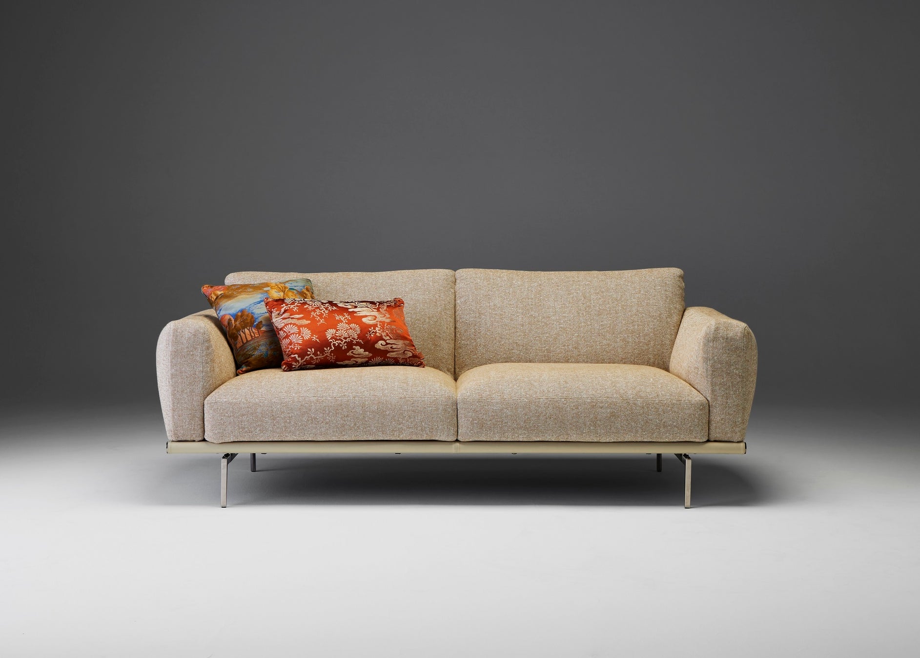 イタリアを代表するラグジュアリーブランド「ポルトローナ・フラウ」のソファは、笑顔のように見える湾曲したアームレストと、軽快な印象のシャープな脚部が印象的です。丸みをもたせたソフトなフォルムは、思わず座りたくなるリラックス感に溢れています。