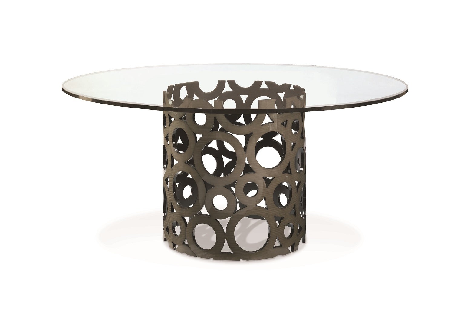 150年以上の歴史を誇る松岡家具製造による海外デザイナーを起用したブランド「MATSUOKA」。大小の円を繋ぎ合わせたベースはシャンパンの泡が持つ軽さと複雑さをコンセプトにデザインされました。表面の鏡面仕上げのシカモアと、内側のエナメルラッカー塗装の合板によるコントラストや、床に落ちる影に遊び心を感じさせるテーブルです。