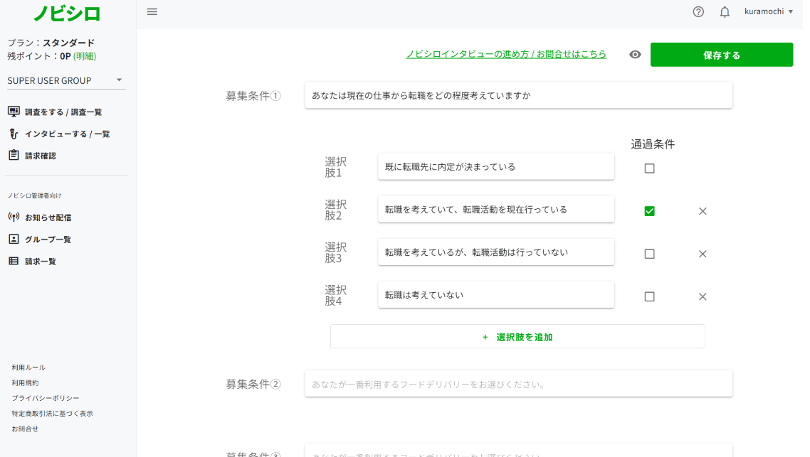 募集条件にインタビューしたいターゲット像を入力するだけで、自動で対象者を探すことが可能です。