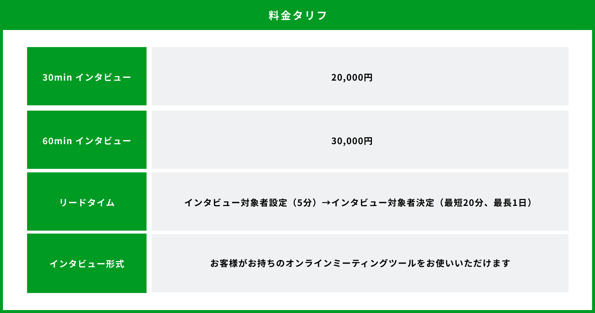 一般的に定性インタビュー調査の実施には時間を要すると考えられています。ノビシロで定性インタビュー調査サービスを提供するにあたり、いかに早く、安価に、そして簡単に顧客インタビューを実現できるかという考えの元で開発を進め、募集後最短わずか20分という早さでユーザーインタビューマッチングと1調査20,000円で30分の顧客インタビューを可能にしました。