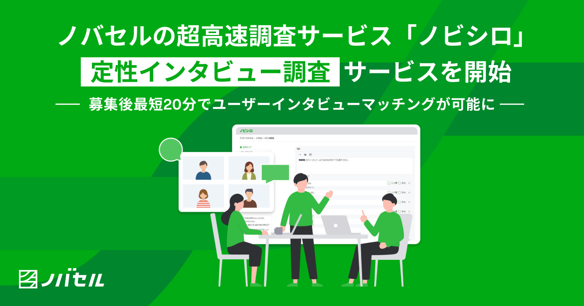 ノバセルの超高速調査サービス「ノビシロ」、「定性インタビュー調査」サービスを開始