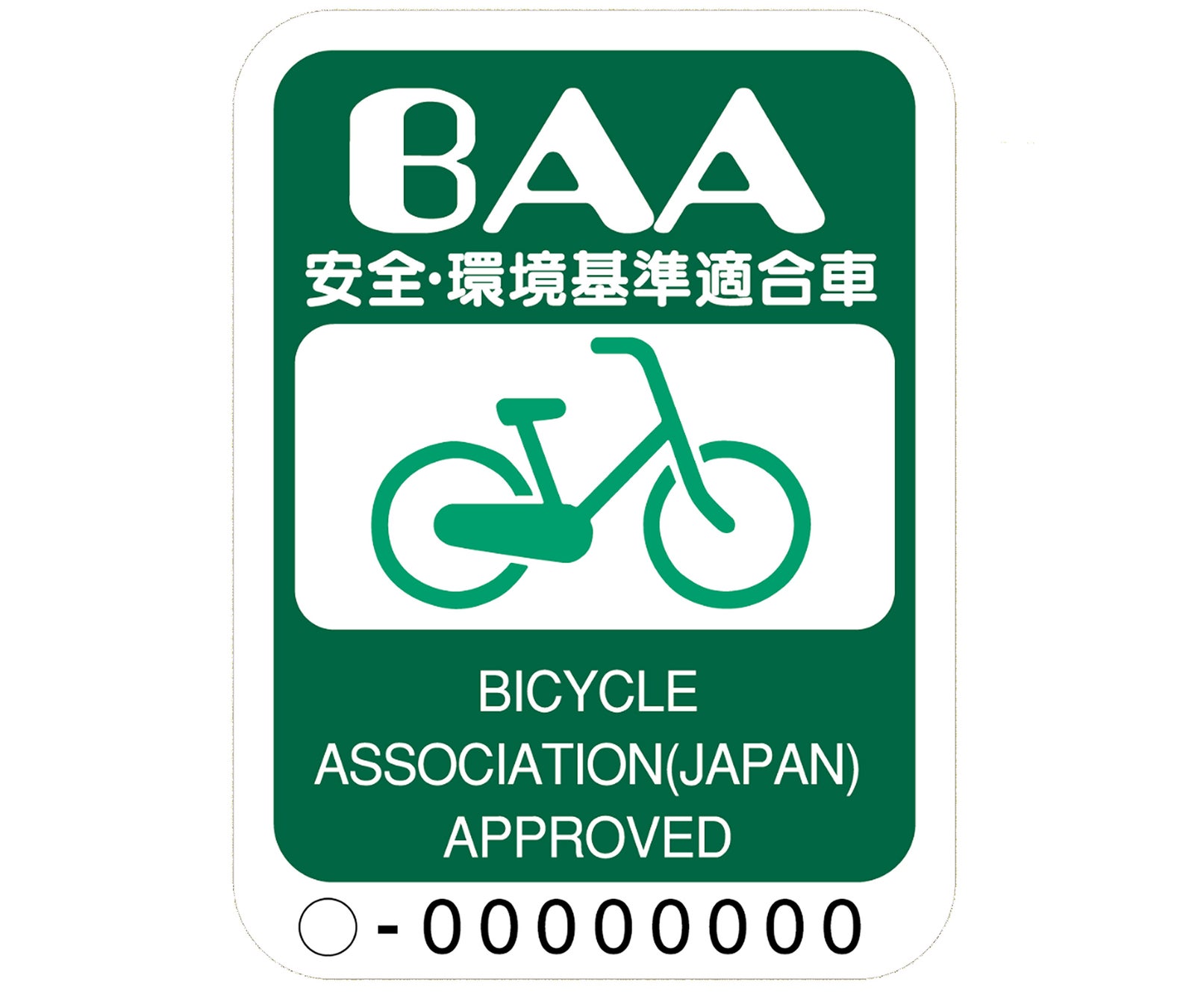 BAAマークは、「自転車安全基準」の約90項目もの厳しい検査をクリアした自転車だけに貼られている、安全・安心で環境に優しい自転車の目印です。