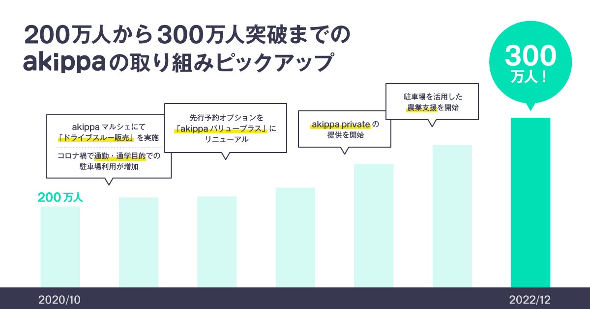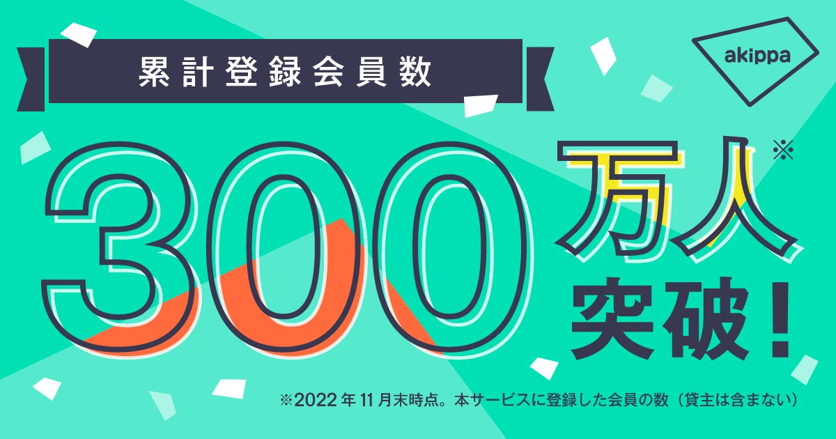 駐車場予約アプリ「akippa(アキッパ)」を運営するakippa株式会社(代表取締役社長CEO:金谷元気)は2022年11月29日(火)にakippaの累計会員数(※1)が300万人を突破したことをお知らせします。