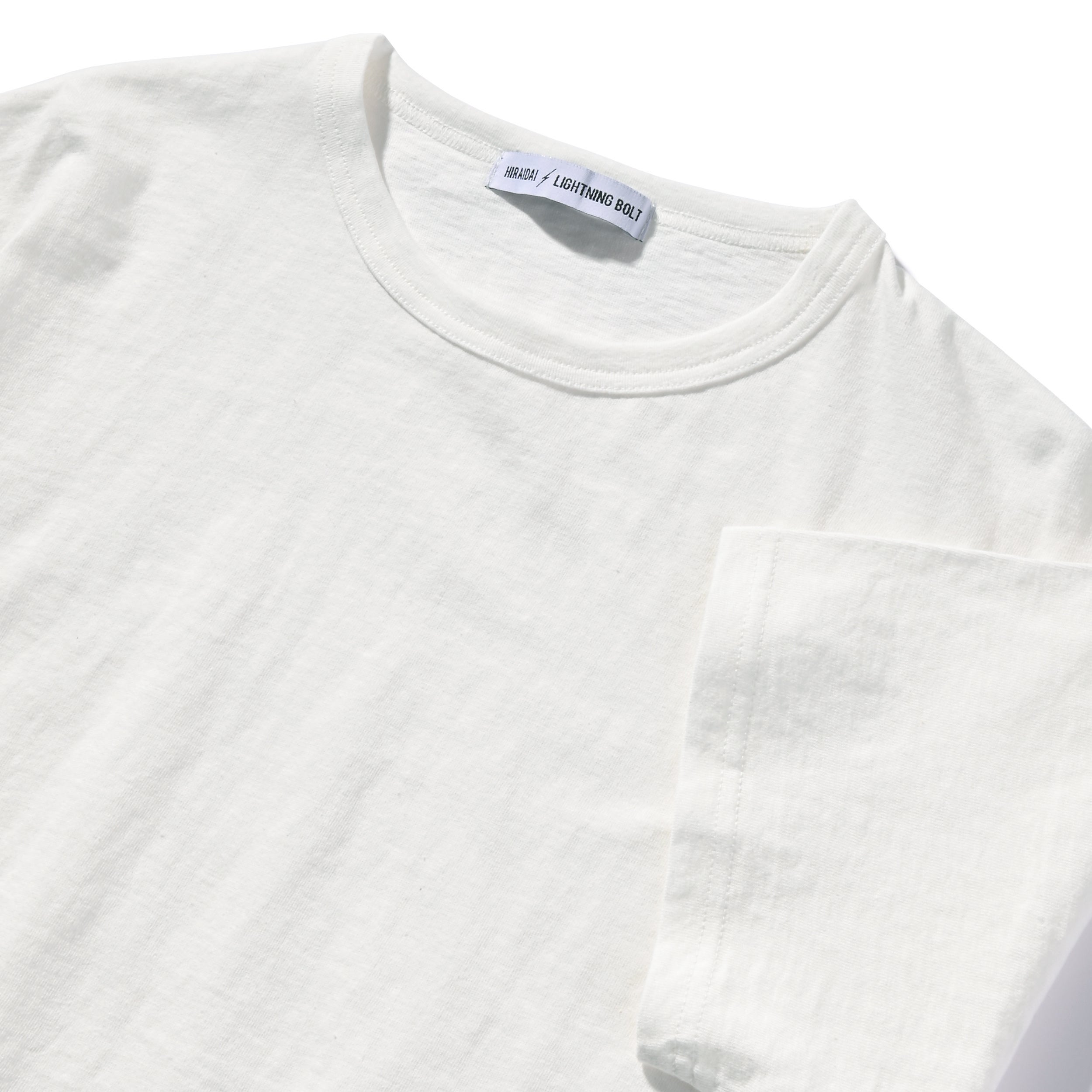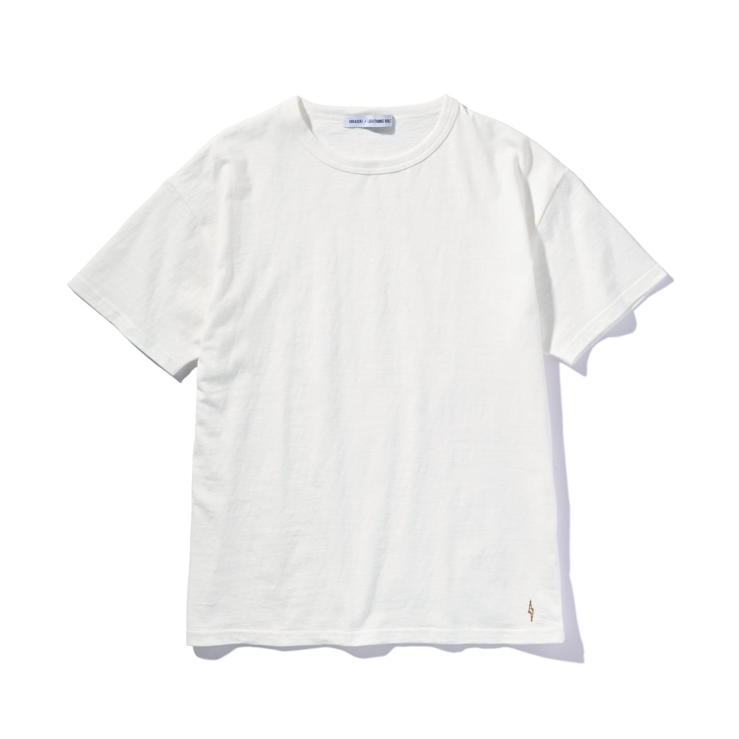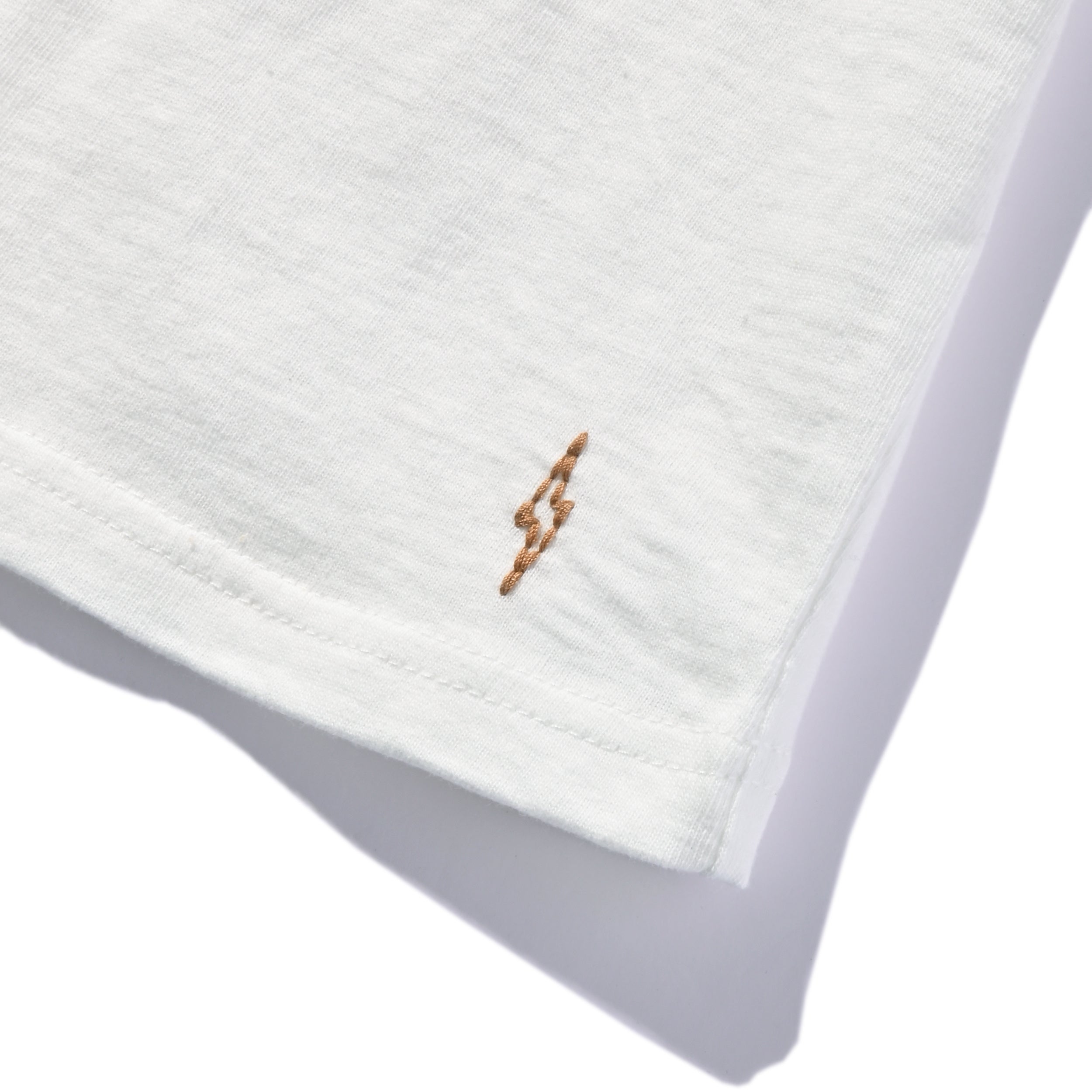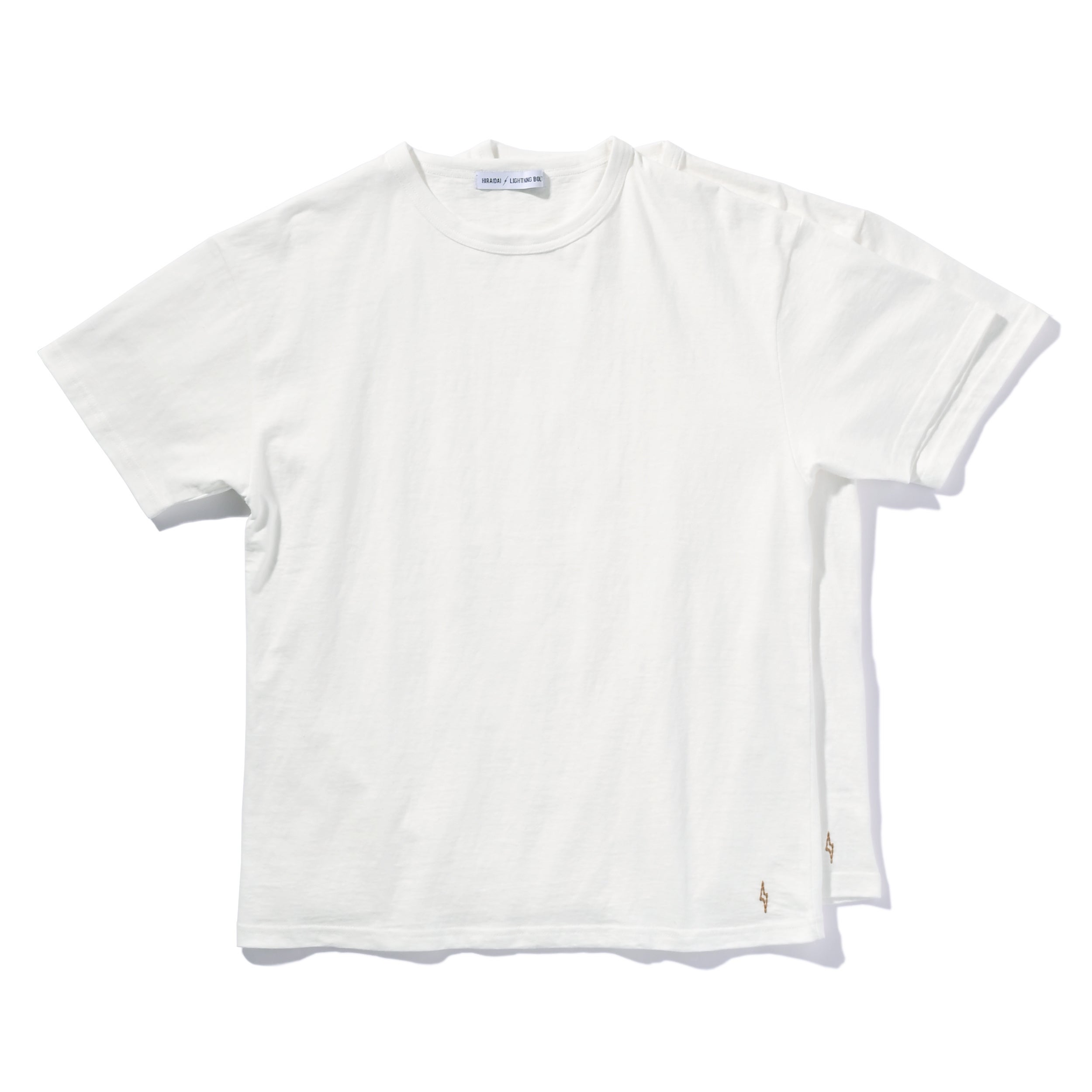 長く愛用できるようにと考慮し生まれたサラリとした肌触りで着るたびに馴染んでいく素材や、裾に入ったイナズマのワンポイントの刺繍、そして男女問わず着用可能なシルエットまで、こだわり抜いた渾身の一枚は独特のネップとムラ感がナチュラルな風合いを引き出す。大切な人へのギフトにも適した、オリジナルパッケージが目を引くアイテムは2枚パックでの販売。