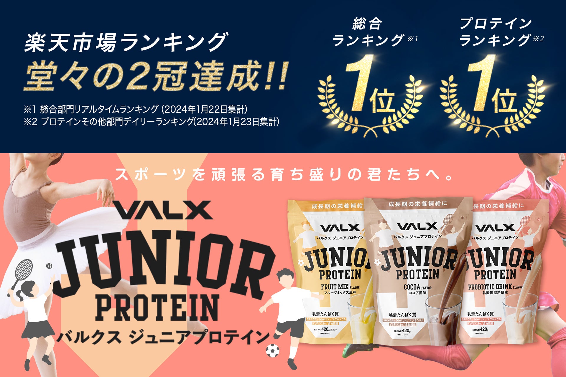 予約販売開始わずか3日で予約分完売!「VALX ジュニアプロテイン」が、楽天市場ランキング 堂々の2冠を達成