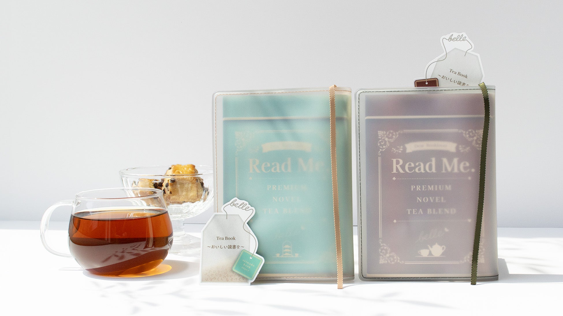 「おいしい読書時間を。」をテーマに、紅茶缶に見立てたブックカバーやティーバッグ型の栞、お茶のような優しい色味のステッチカラーがセットになりました。