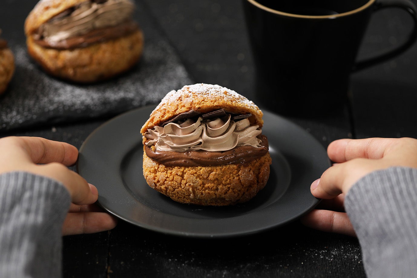 チョコの甘みと程よいビターさをご賞味いただける、少し大人な味わいのクッキーシューをどうぞお楽しみください。