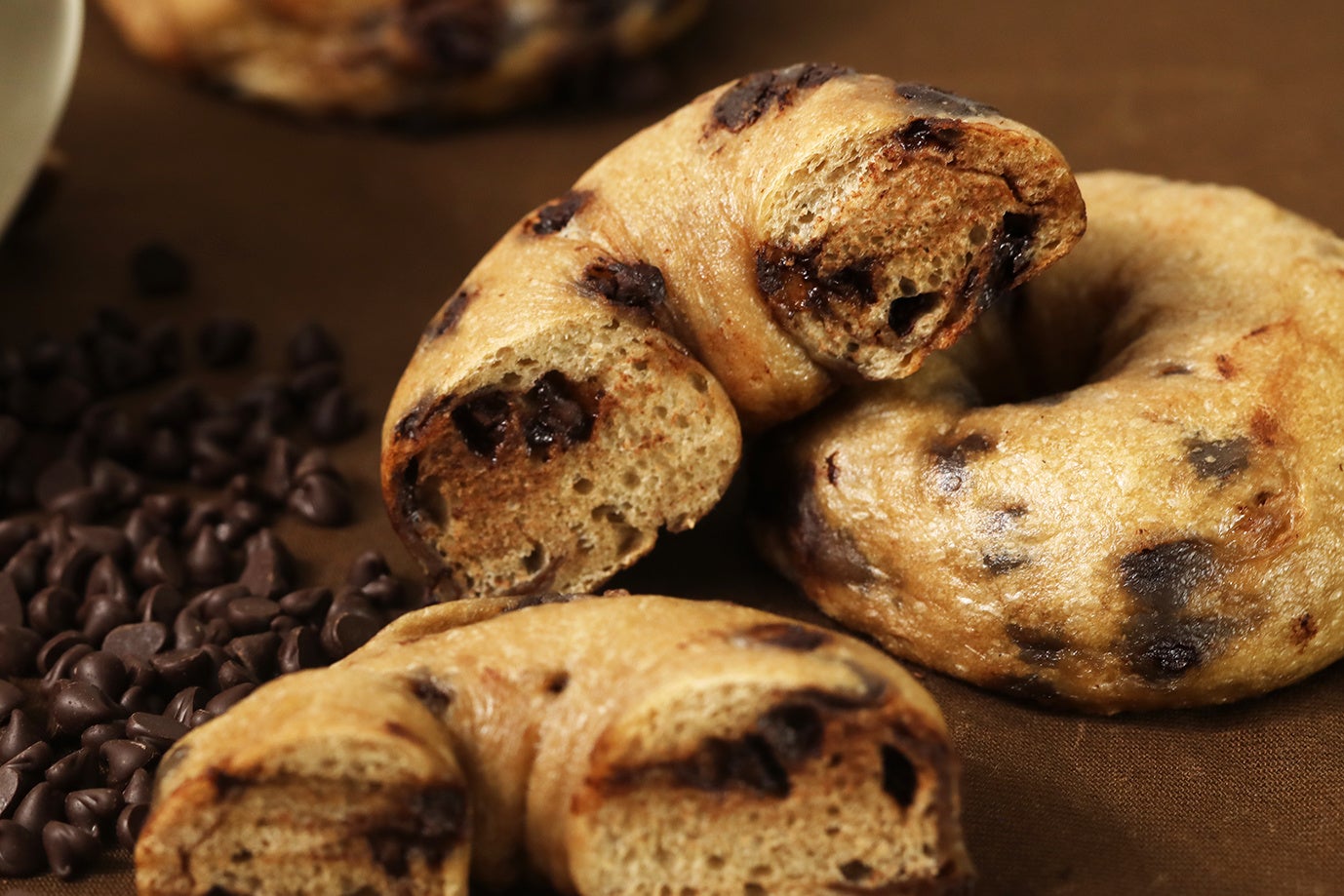 チョコチップを練りこんだ生地にチョコ風味のクリームを包んで焼き上げ、バレンタインシーズンの食卓にもおすすめなフレーバーに仕上げました。チョコチップのザクザクとした食感や、チョコの甘くとろける味わいを存分にご賞味いただけるベーグルです。