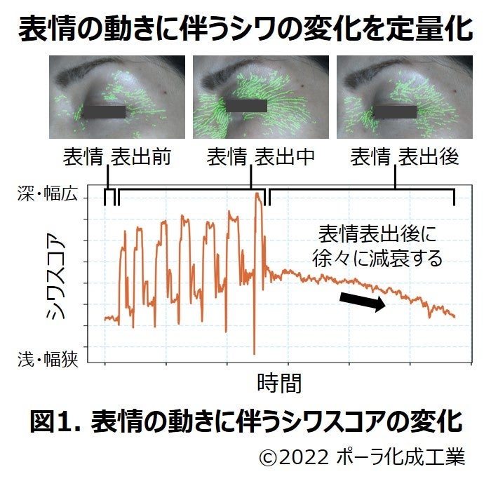 表情の動きに伴うシワの変化を定量化する評価法を開発 表情によって一時的に生じるシワが加齢に伴い消えにくくなることを確認