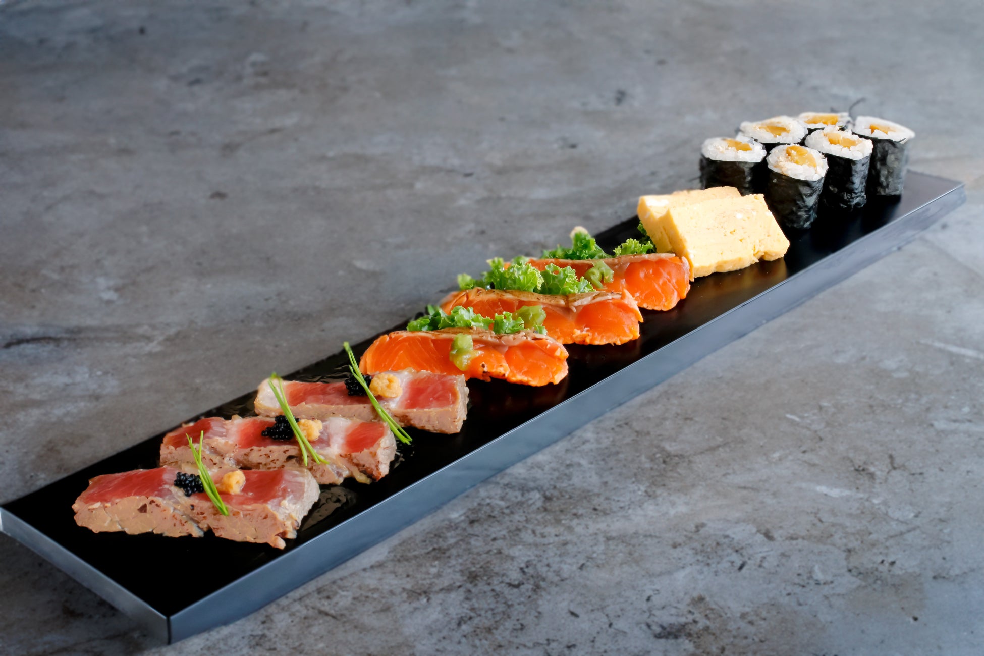 創業から50年を超える、三崎恵水産の主力商品といえば、なんと言ってもまぐろ。まぐろ問屋が新たに挑戦したのは、贅沢な「本まぐろ大とろ」と人気の「天然水活鮮サーモン」を意外な組み合わせである、プルーンの自家製ダレに漬け込み熟成させた濃厚でとろける逸品。 目に存在する栄養素の DHAが豊富な本まぐろと、アスタキサンチンが豊富なサーモンに、βカロテンが豊富なプルーンの自家製ダレに包み込み熟成することにより、濃厚でとろける味わいを実現しました。 さらにルテインが多く含まれているケールと玉子焼を添え、カリカリ食感がアクセントのたくあんでビタミン C も摂取できる、まさに究極のとろたく巻が誕生しました。