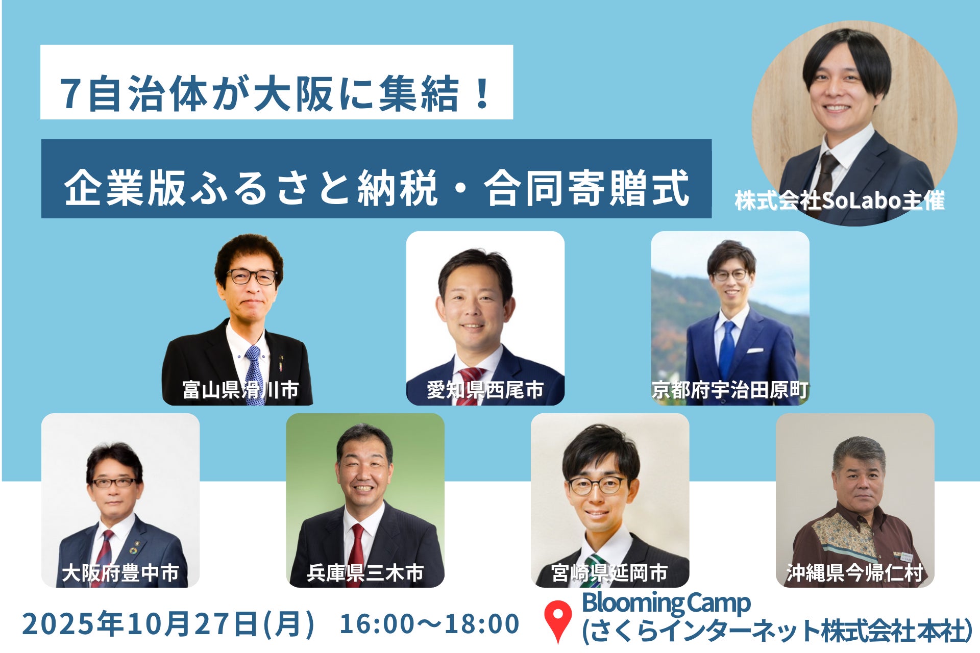 7自治体が大阪に集結!企業版ふるさと納税・合同寄贈式を2025年10月27日開催 ~株式会社SoLaboが自治体と事業者の橋渡しとなり、全国規模での企業版ふるさと納税の活用を促進~