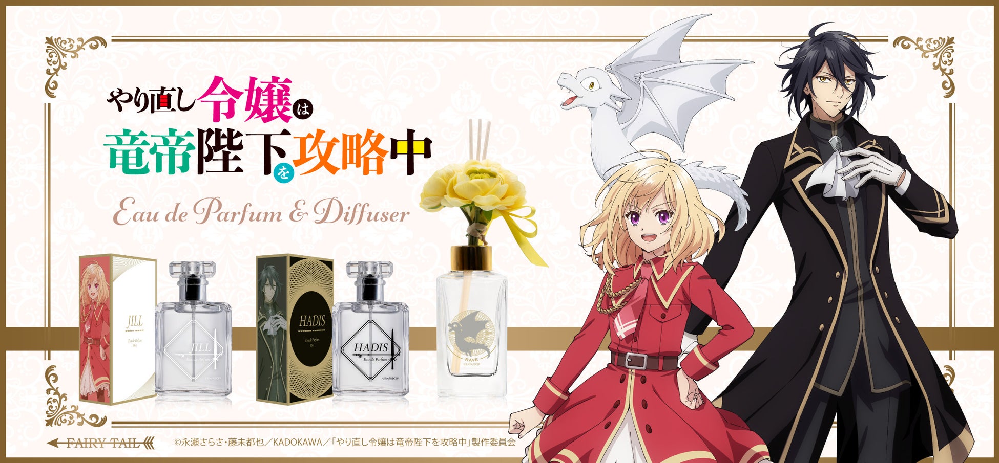 TVアニメ『やり直し令嬢は竜帝陛下を攻略中』より、ジルとハディスをイメージした香水が登場!ラーヴェのフラワーディフューザーも同時発売です!