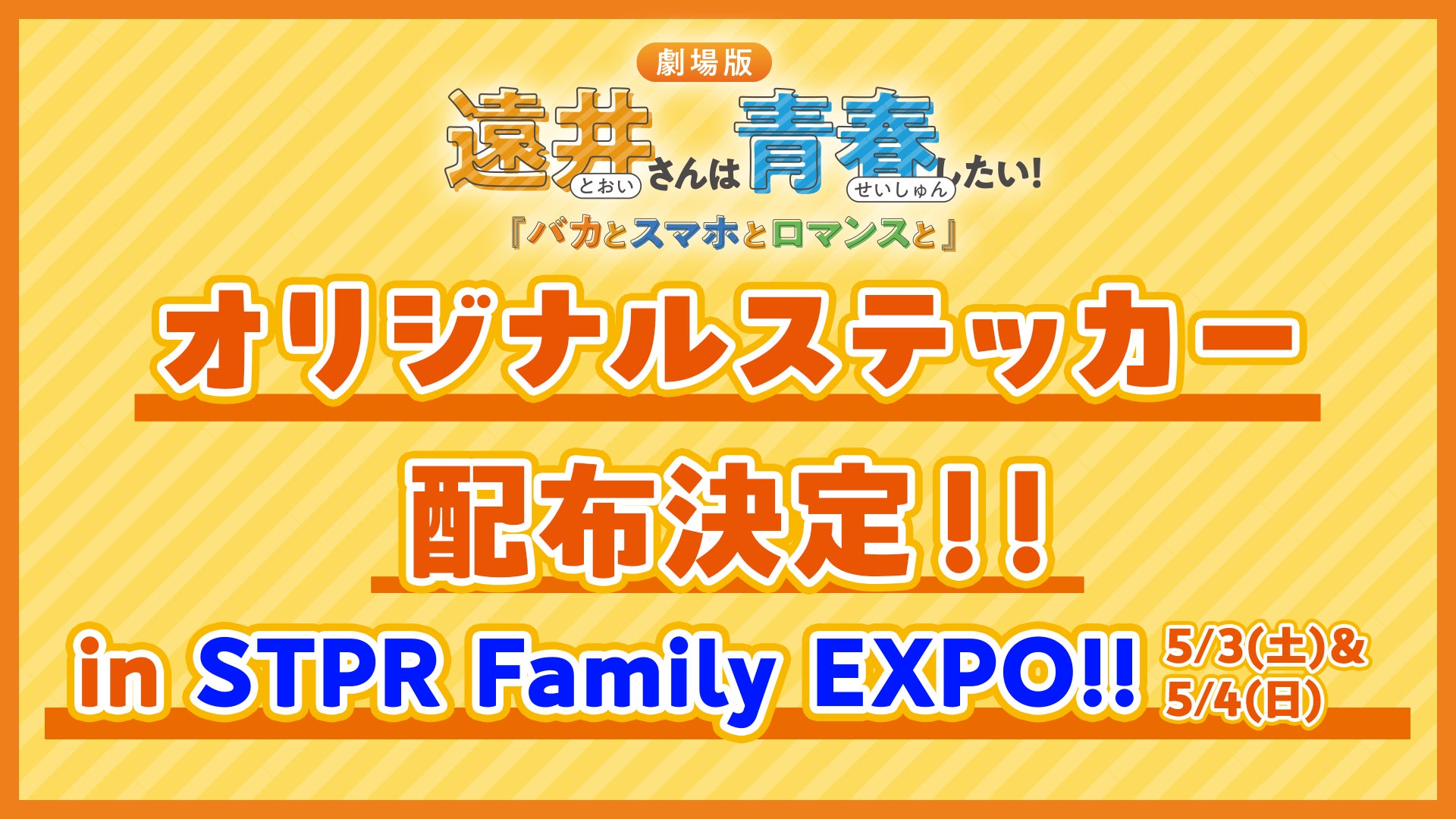 ①「STPR Family EXPO!!」にて「遠井さんは青春したい!『バカとスマホとロマンスと』」オリジナルステッカー配布決定!