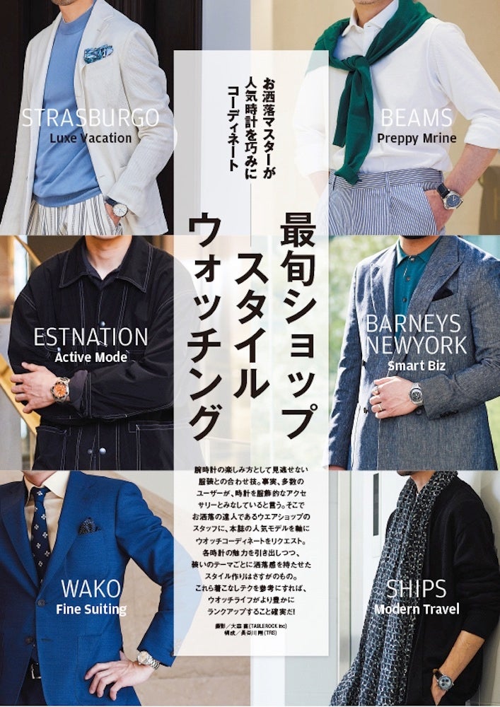 さらに今号は複数の有名セレクトショップの協力を得て、テーマに沿った定番&新作ウオッチの着こなし方を提案してもらう新たな試みも。