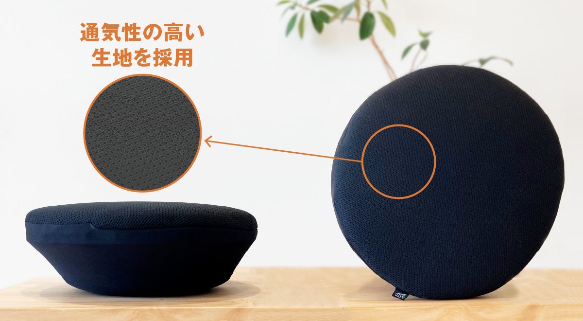 本体は一般的な椅子やソファ等にも使われているクッション性と耐久性の高いウレタンクッション材を使用しています。カバーは通気性とグリップ性のある生地で構成。滑り止め素材を採用することで、クッションの座面に座って動いてもズレにくいです。