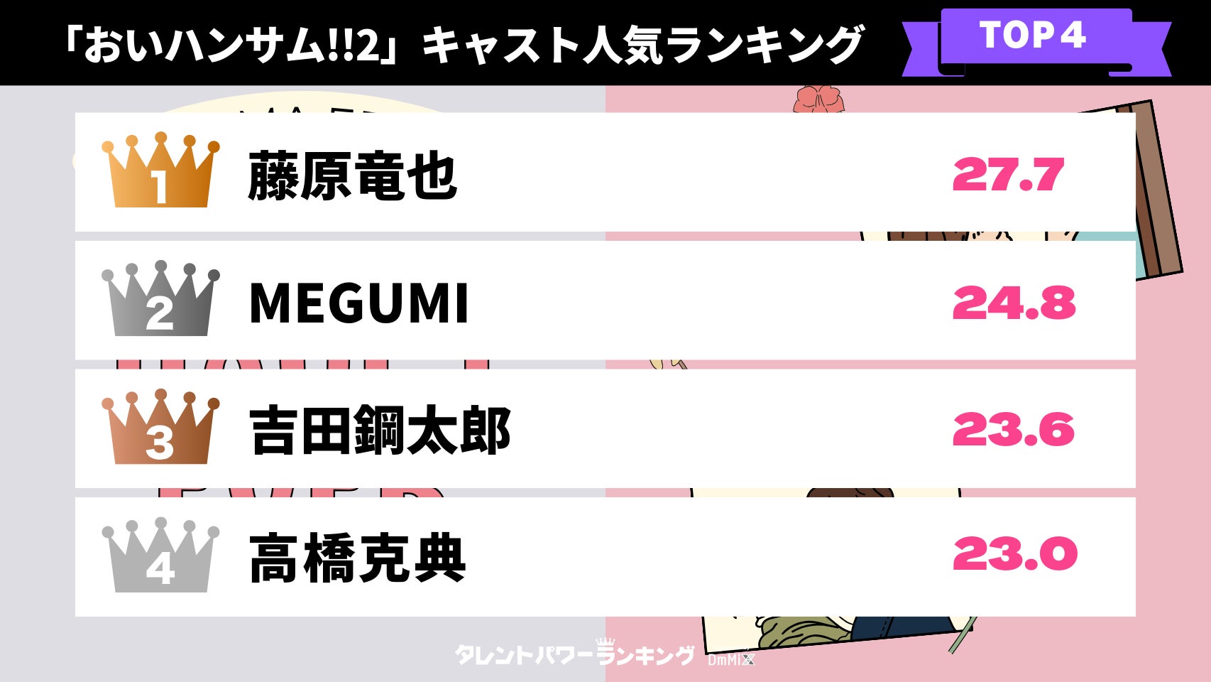 『タレントパワーランキング』では、タレントパワーランキングに登録されている、ドラマ「おいハンサム!!2」に出演しているタレントのパワースコアを調査。