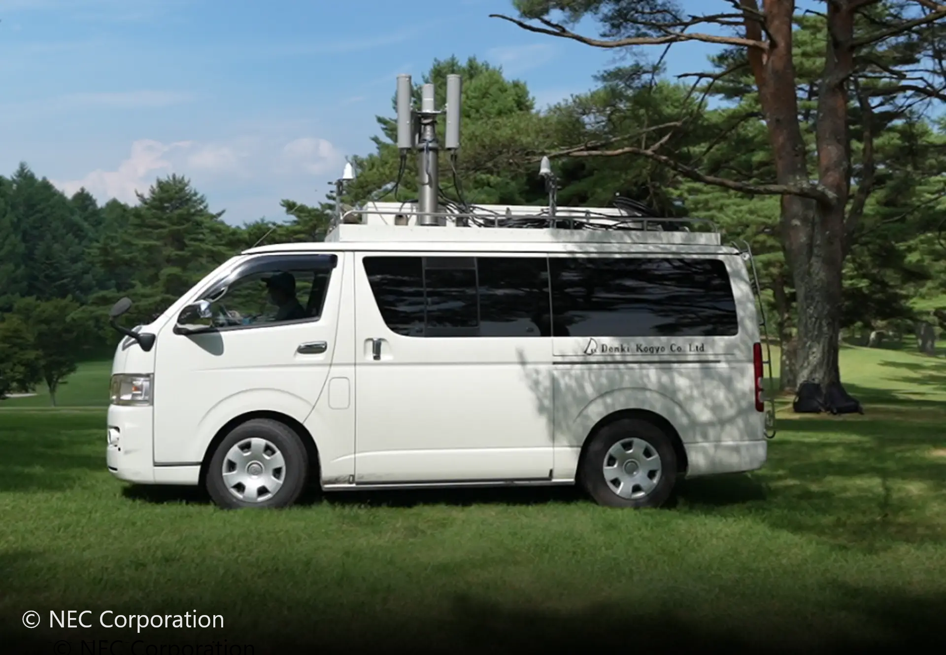 可搬基地局車に搭載したNEC製ローカル5G Sub6一体型基地局UNIVERGE RV1200(注1)
