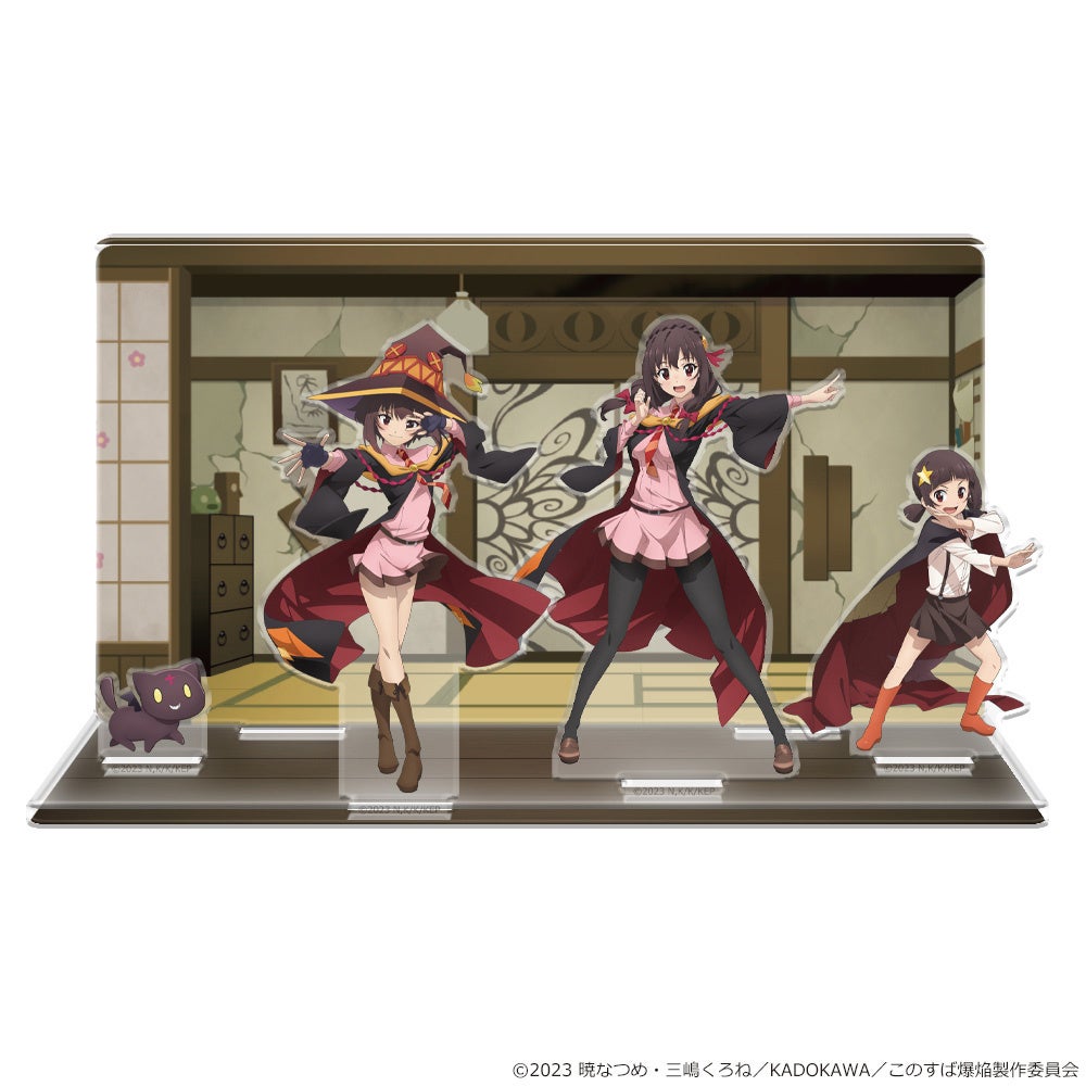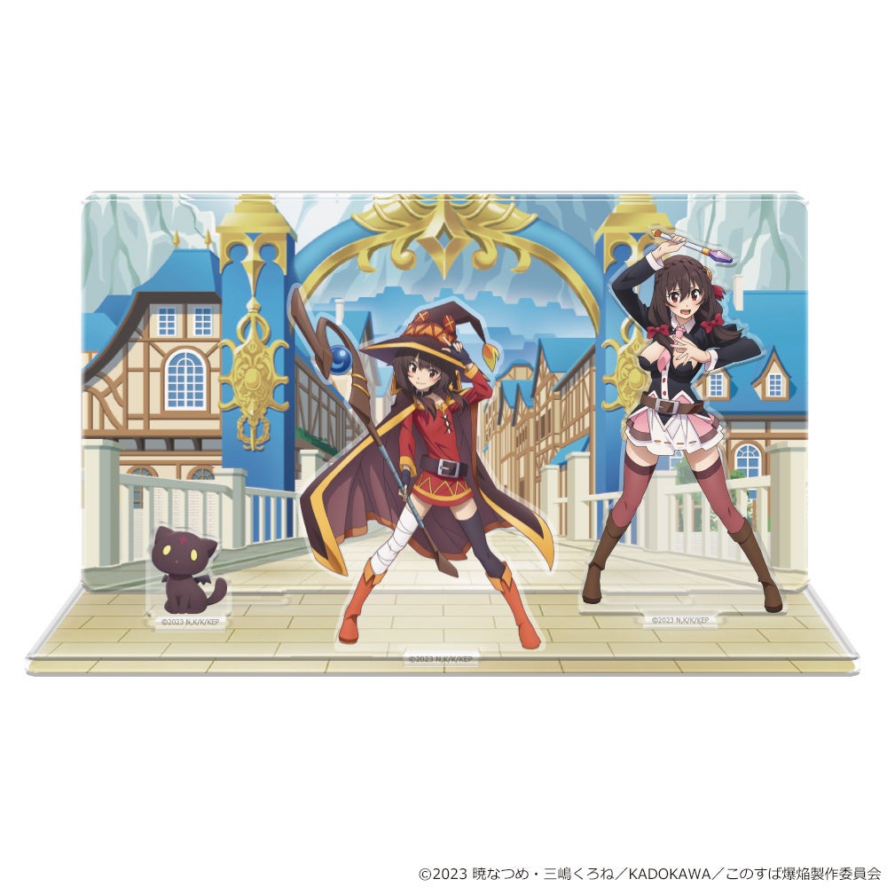 アニメ「この素晴らしい世界に爆焔を!」アクリルジオラマ、アクリルキャラスタンド、クリアファイル、アクリルコースターの受注を開始!