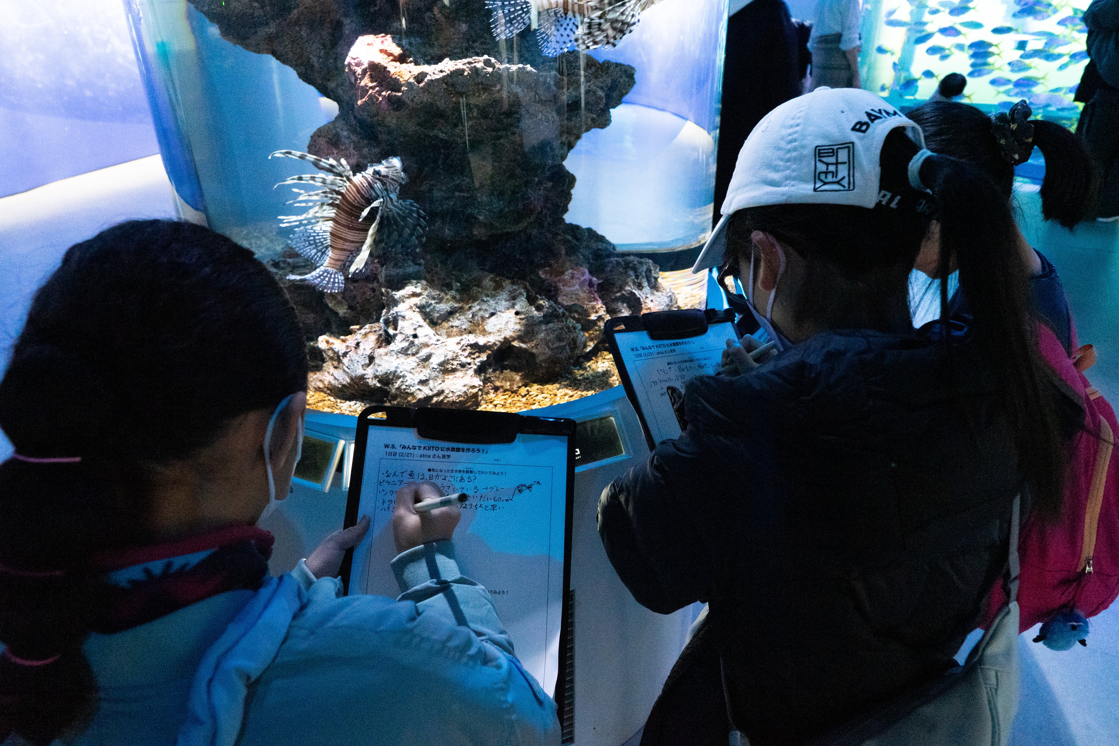 子供たちが自分たちのアイデアやこだわりを堂々と解説し対応する姿は、まるで水族館飼育員、スタッフのようでした。