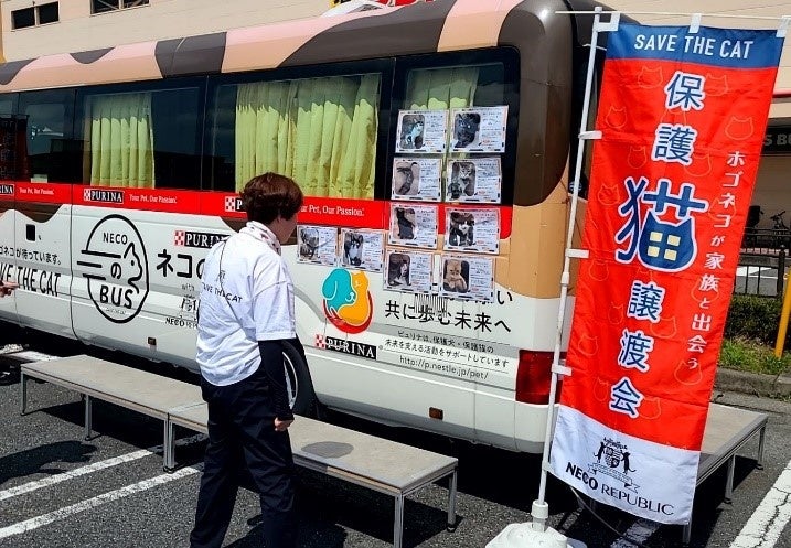 ・譲渡会用の車両として、バス車両を全面的に改装したピュリナの 「ネコのバス」。移動式という特徴を活かし、各地で保護猫に関する啓発と譲渡促進に貢献しています。