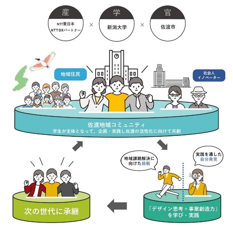 新潟県佐渡市(以下「佐渡市」)、国立大学法人新潟大学(以下「新潟大学」)、東日本電信電話株式会社新潟支店(支店長:德山隆太郎、以下「NTT東日本」)、株式会社NTT DXパートナー(代表取締役社長:遠藤玉樹、以下「NTT DXパートナー」)は、学生エンパワーメント※1と佐渡市の課題解決を両立する佐渡イノベーション・プログラム(トライアル)を実施します。本事業はNTT東日本・佐渡市・新潟大学の連携協定※2に基づき推進する事業です。