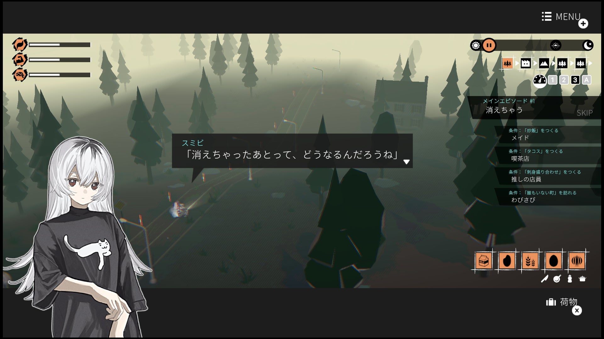 (「満腹度」の減少などを難易度設定でOFFにすることもできます)