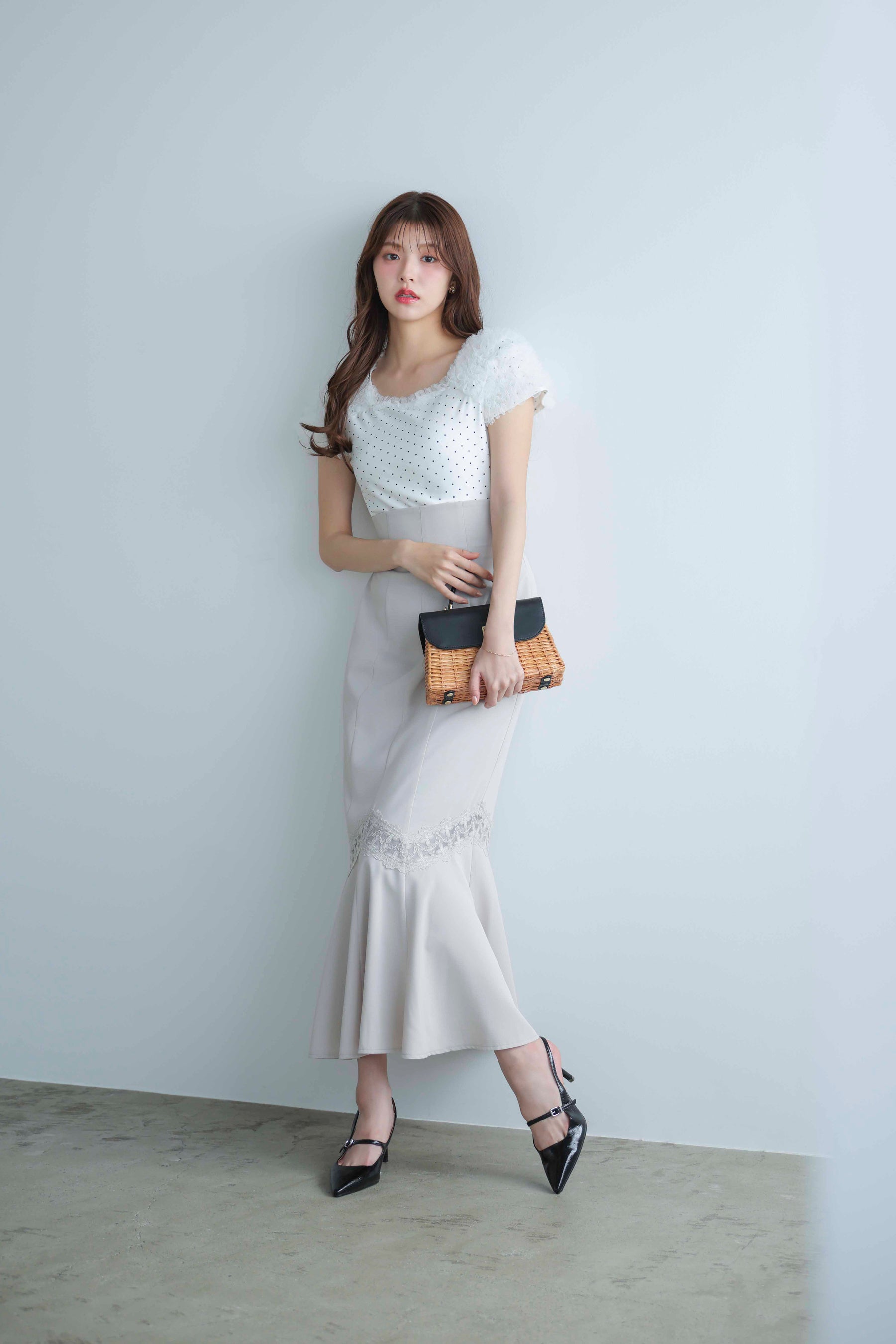 華やかなドットフリルが目を惹く、主役級のマーメイドスタイル。