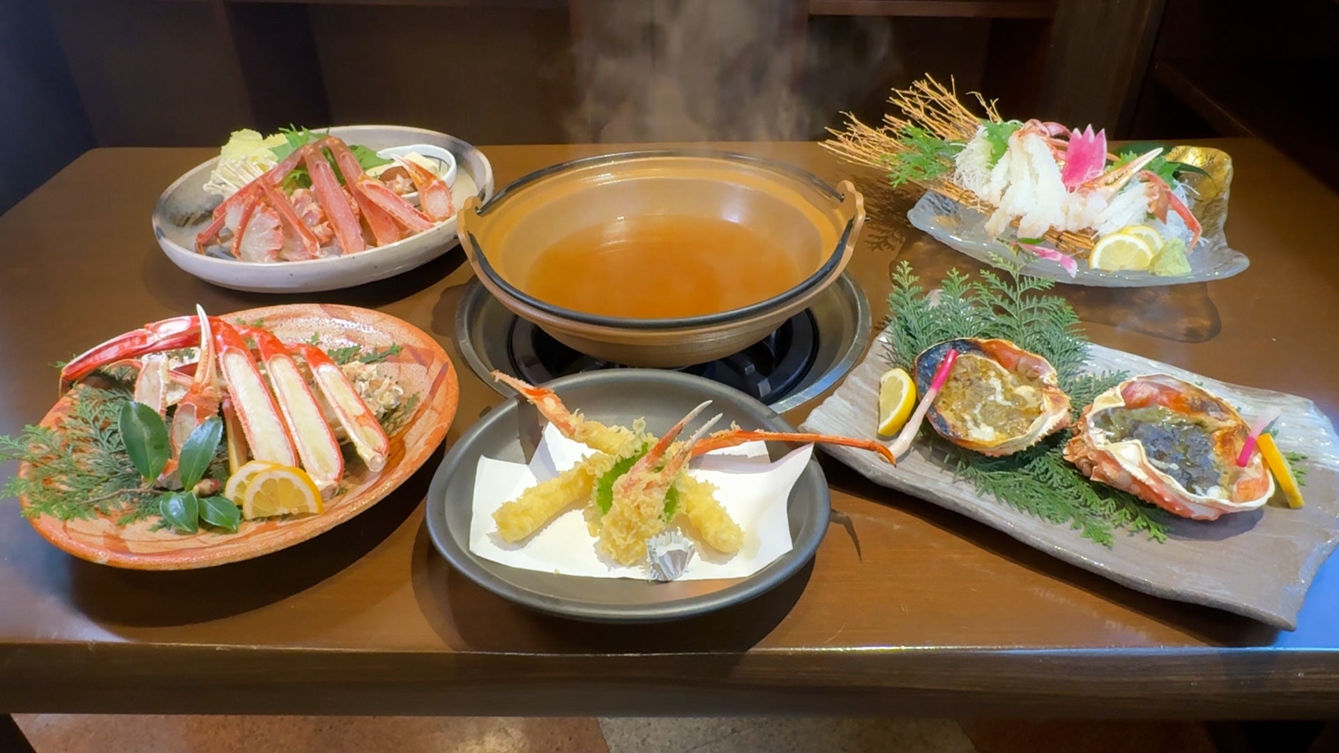 はなあかりは終点の浜坂を目指すが、六角は城崎温泉駅で下車。松葉ガニでも有名な城崎温泉で、刺身に天ぷらに鍋にと、カニづくしのランチを堪能!「すごいです!俺、こんなにカニ見たの初めて」と目を丸くする。