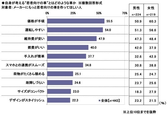 ◆若者向けの車とは? 1位「価格が手頃」2位「運転しやすい」3位「維持費が安い」