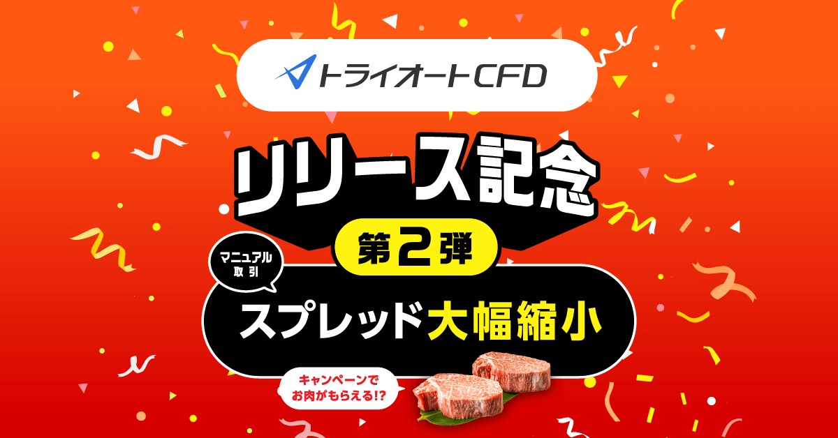 トライオートCFD リリース第2弾企画~スプレッド大幅縮小・お肉が当たるキャンペーン~