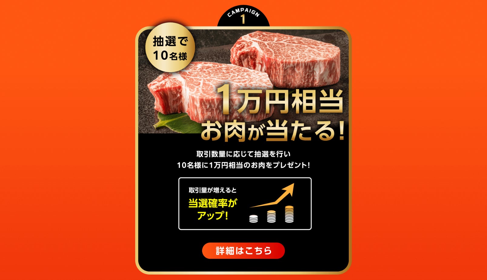 抽選で10名様に1万円相当のお肉が当たるキャンペーンを開催いたします。