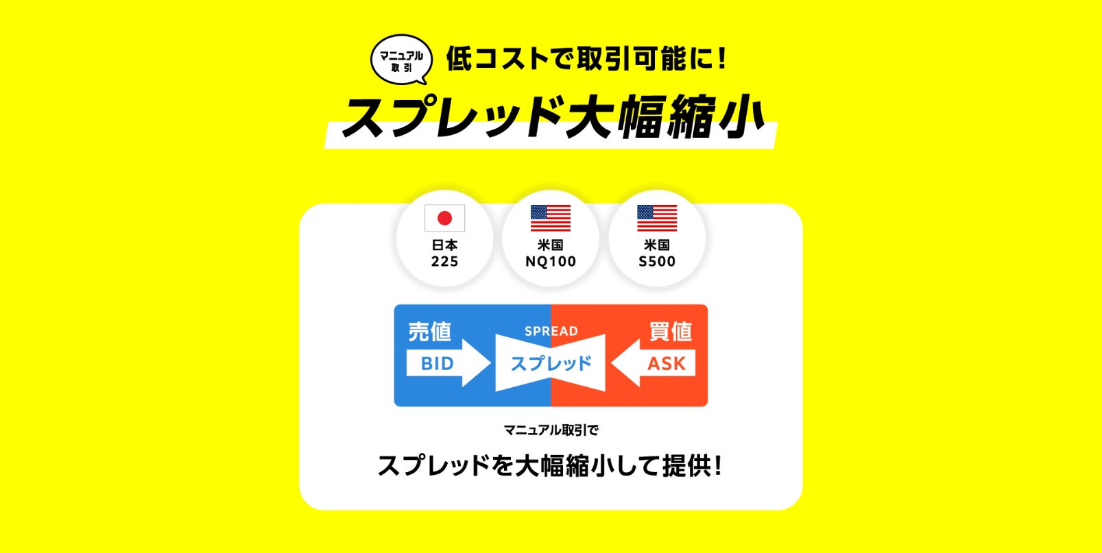 日本225、米国NQ100、米国S500などの人気銘柄はもちろん、その他の銘柄を従来よりも低コストで取引できるようになります。