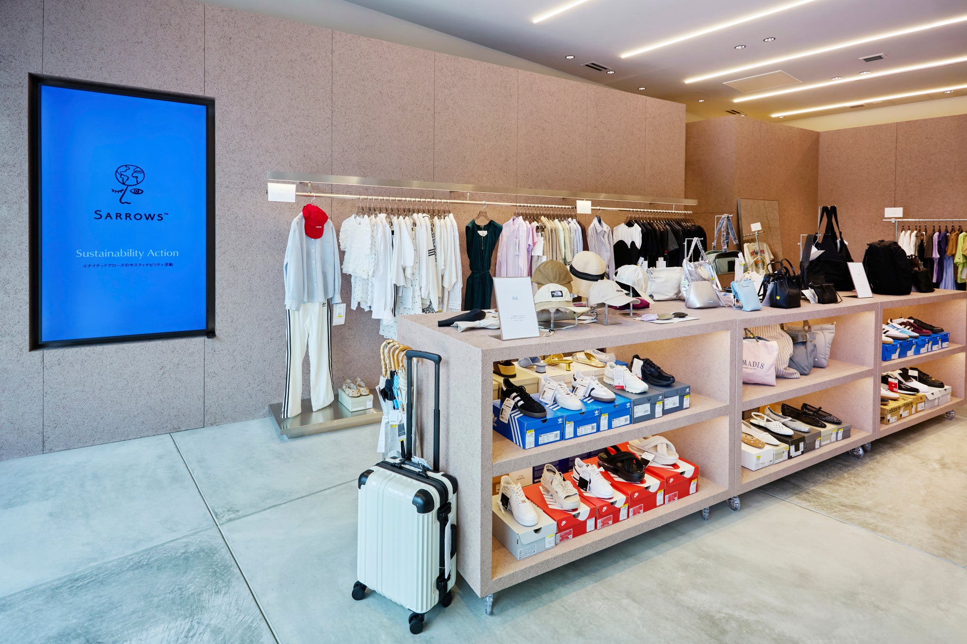 オープン当初は、規格外品やリペア品、サンプル品の販売を行います(終了日未定)。生産や流通の過程において何らかの理由により傷が付いたり基準から外れたりすることで規格外となった商品、またはそれらを丁寧に修理したリペア品、開発段階で制作されるサンプル品に、新たな背景やストーリーを吹き込んでお客様のもとへお届けします。取り扱うのは当社の各ブランドのメンズ・ウィメンズのウェア、シューズやバッグ等で、基本的に新品です。返品品や二次流通品等の取り扱いはありません。