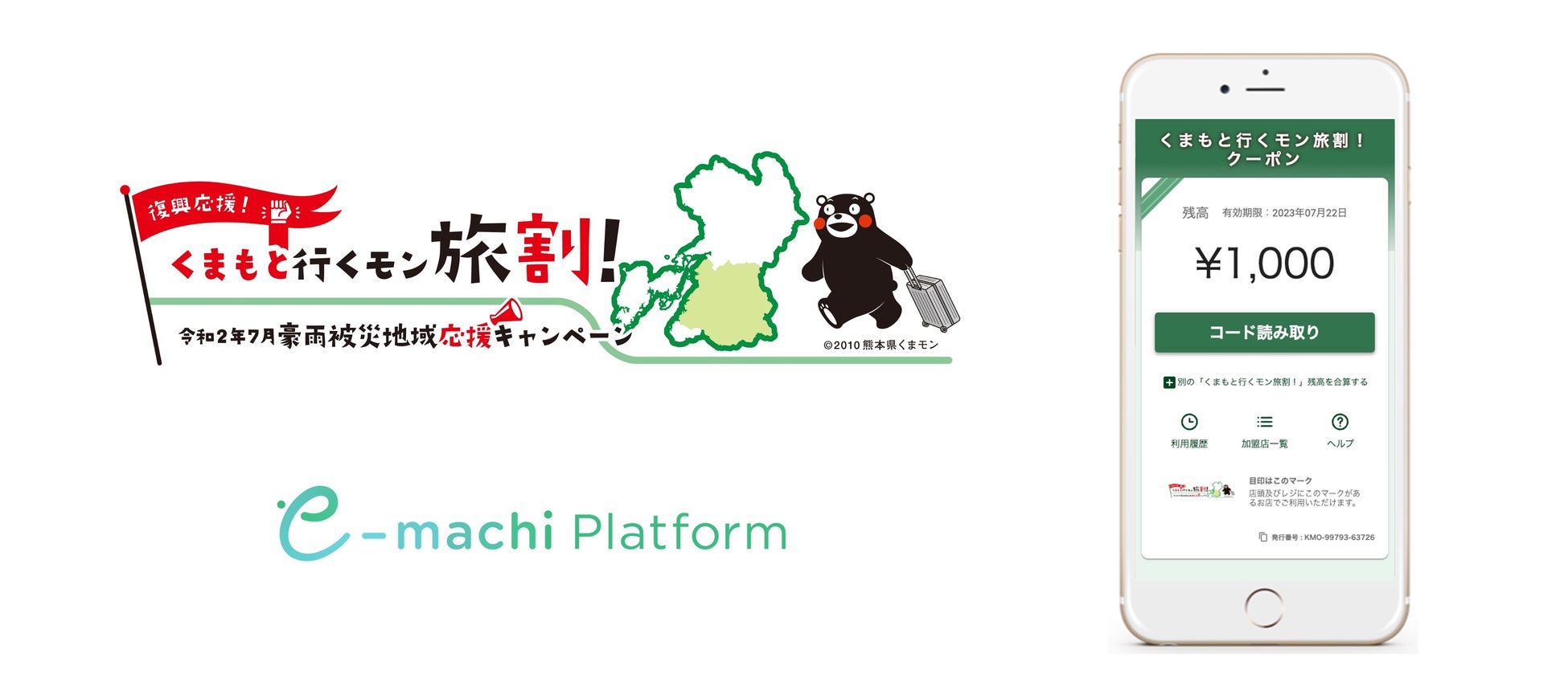 eギフトプラットフォーム事業(※1)を展開する株式会社ギフティ(本社:東京都品川区/代表取締役:太田 睦、鈴木 達哉/以下、ギフティ)が提供する、自治体・地域の課題を解決するデジタルプラットフォーム「e街プラットフォーム®️」(※2)を、令和2年7月豪雨の被害が大きい熊本県南地域における豪雨被災地域の観光復興の後押しを目的に熊本県が実施するキャンペーン「くまもと行くモン旅割!」に採用いただきましたので、お知らせいたします。本キャンペーンは、旅行代金・宿泊料金の割引きに対する助成と豪雨被災地域内で利用できる地域限定クーポンを付与する事業であり、2023年7月7日(金)より、発行および利用が開始された地域限定クーポンの運用基盤として「e街プラットフォーム®️」を活用いただいております。なお本件は、本キャンペーンの事務局である日本旅行熊本支店からの委託を受けて実施しております。