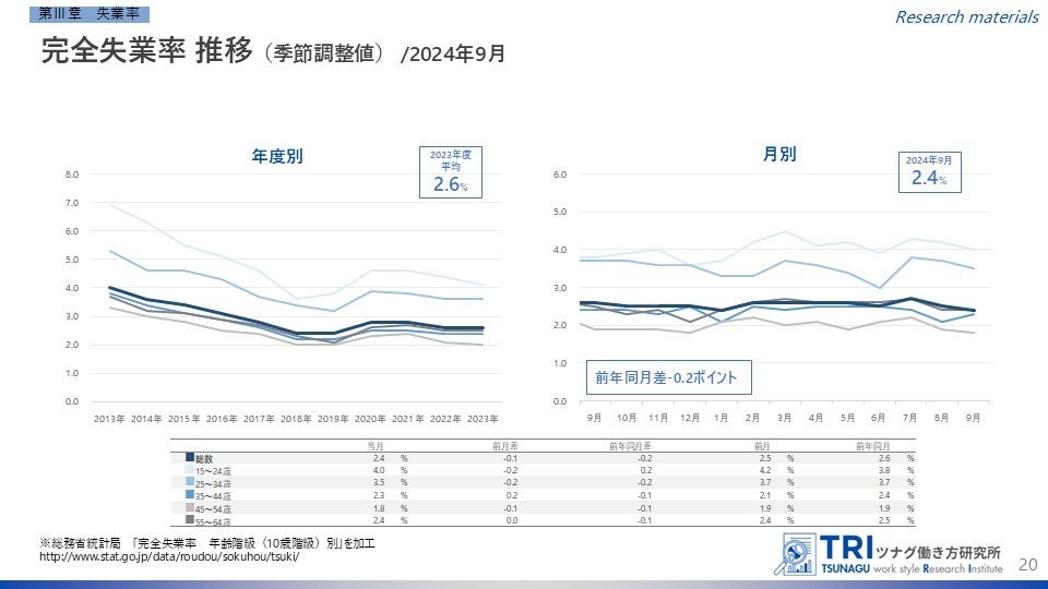 2. 完全失業率は2.4%。前月差-0.1ポイント、前年同月差-0.2ポイント。