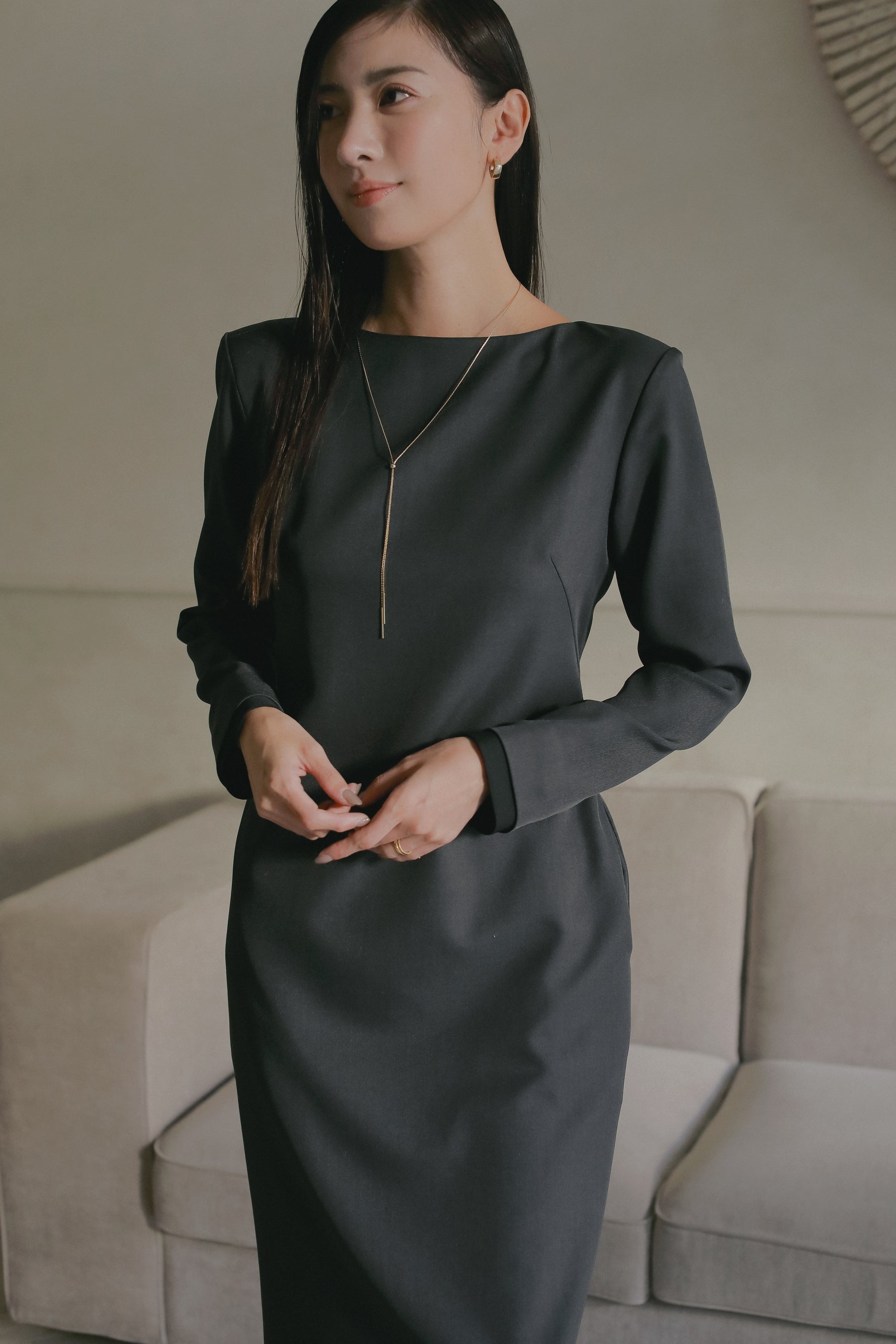 タイと胸元のカッティングが、今を感じさせる洗練デザインです。
