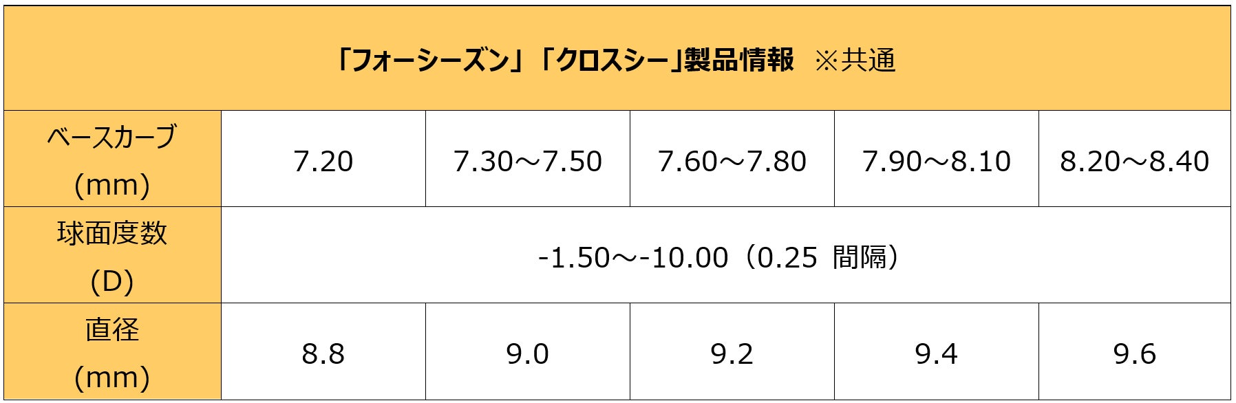 3ヵ月使い捨てハードコンタクトレンズ「フォーシーズン」「クロスシー」 規格範囲拡大のご案内
