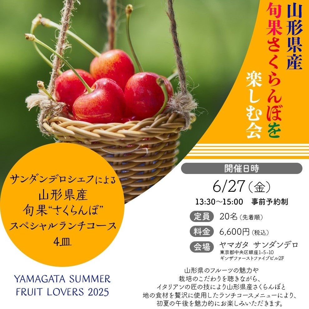 『YAMAGATA Summer Fruit Lovers 2025 山形県産夏フルーツを楽しむ会』山形県産さくらんぼの魅力を伝える一環として、6月27日イベントを開催します