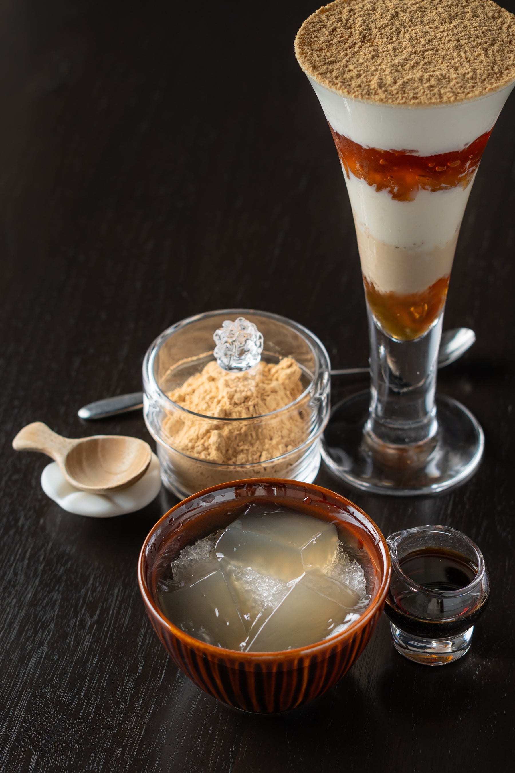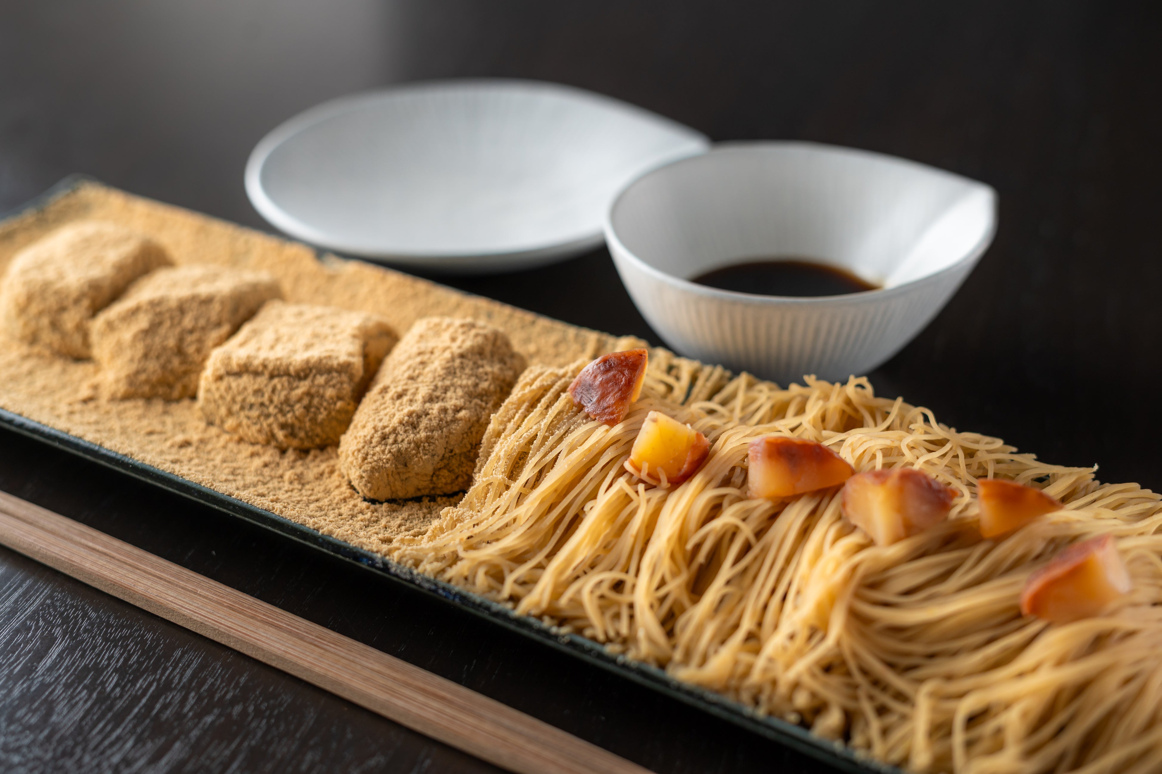 香り高いきな粉、栗の深い味わい、そしてわらびもちのモチモチとした食感が織りなす絶妙なハーモニーをお楽しみいただけます。一皿で懐かしい和の味わいと洋の洗練された美味しさを同時に味わう、至福のひとときをお過ごしください。