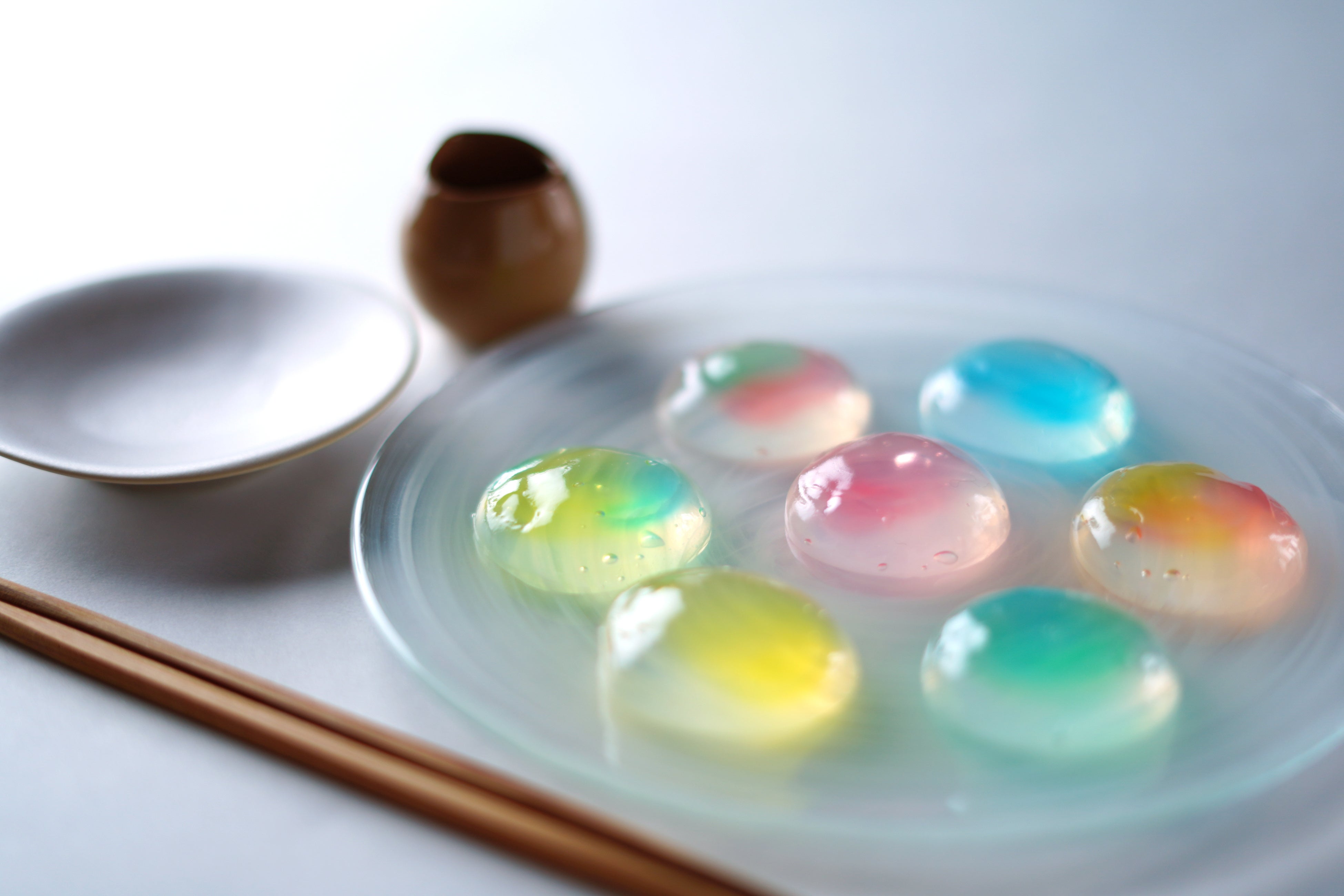 吉祥菓寮の自家製わらびもちが、秋限定の装いで登場。つるりとなめらかな舌触りのわらびもちの一方には店内で丁寧に深み焙煎した「ミヤギシロメ」大豆のきな粉をたっぷりと。そしてもう一方には、香ばしい焼き栗の風味を凝縮したモンブランクリームを贅沢に絞りました。