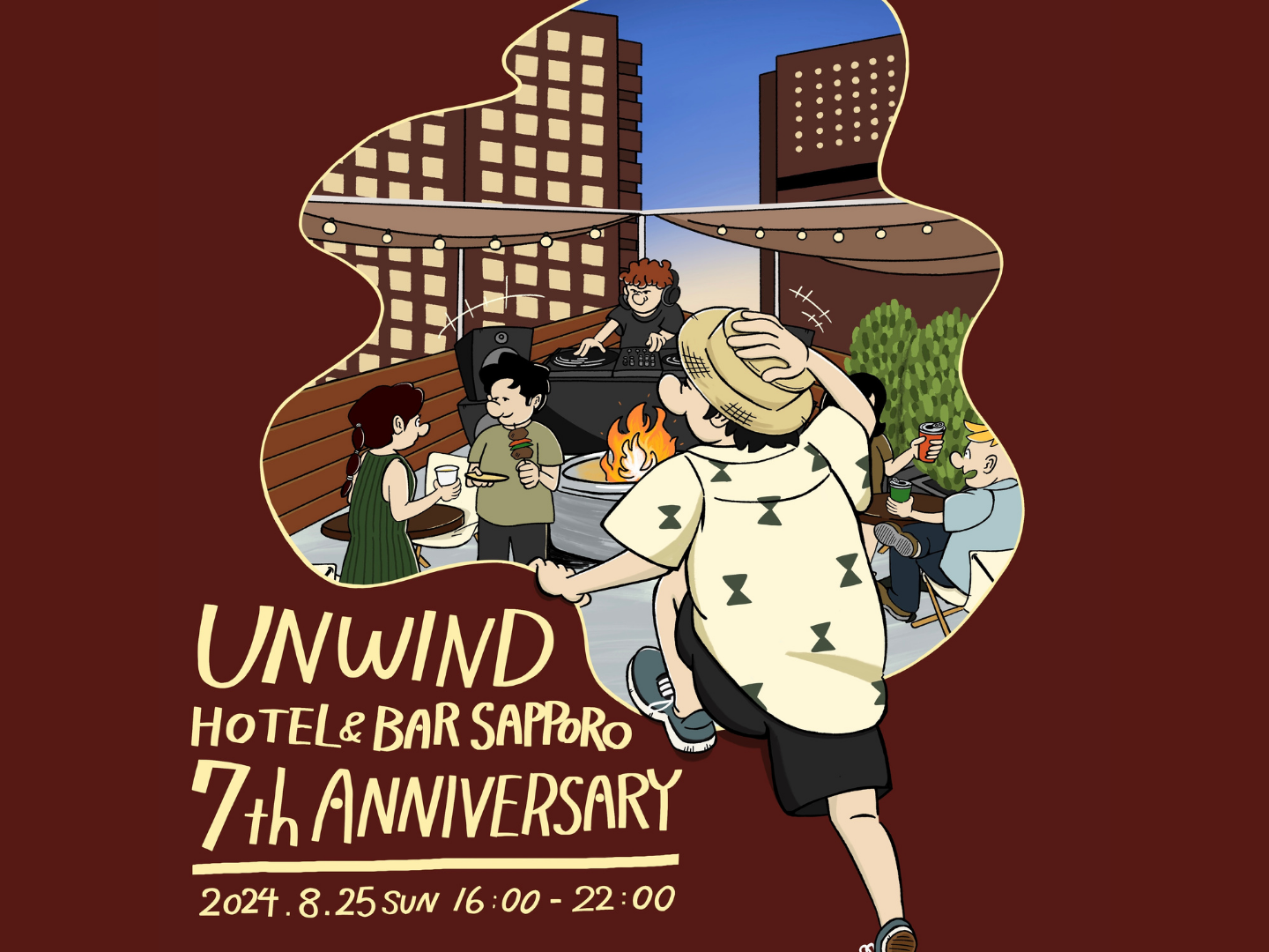 この7年間当ホテルを支えてくださったみなさまへの感謝の気持ちを込めて、UNWIND HOTEL & BAR 札幌で普段から沢山のお客様に愛されている内容はもちろん、当ホテルと親交がある北海道内で活躍されている方々を招いて、食・音楽・焚き火・ドリンク・ファッション・グッズなどを通して、UNWIND HOTEL & BAR 札幌の魅力を一日で体験できる周年イベントを開催いたします。