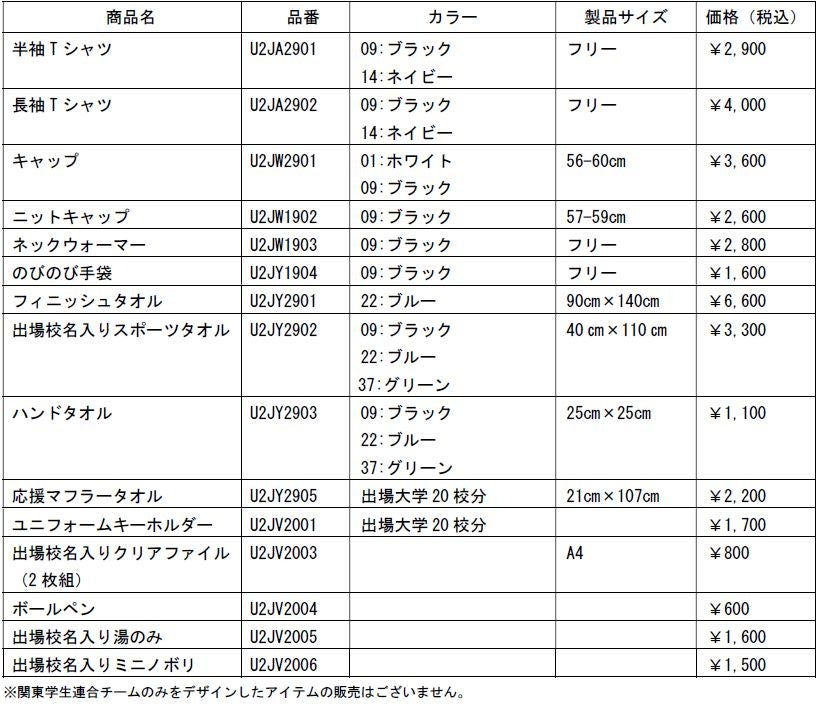 今回発売する第99回箱根駅伝オフィシャルグッズは、大会記念Tシャツや出場校のたすきをデザインしたマフラータオルやキーホルダー、選手が走り終えた後に使われるフィニッシュタオル、寒い冬に役立つネックウォーマーや手袋など全15種のアイテムを幅広く取り揃えています。
