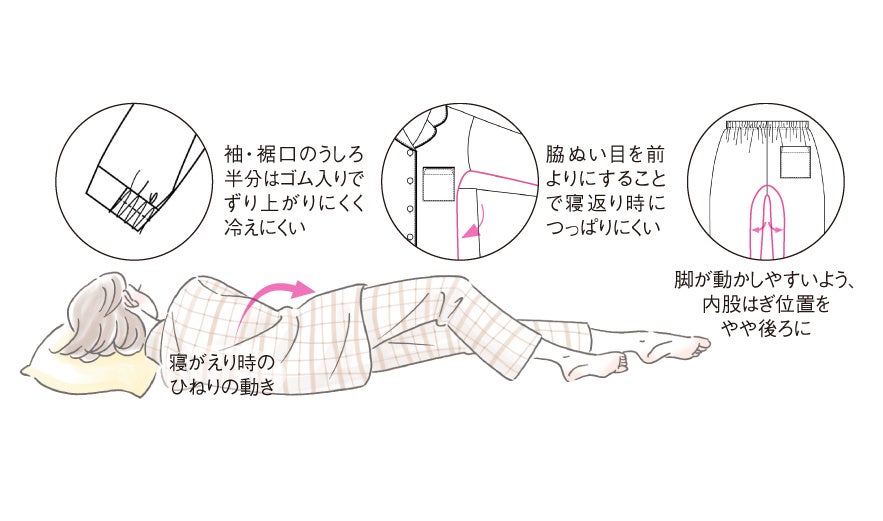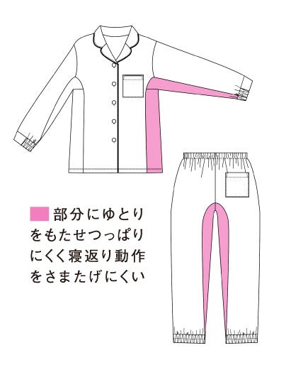 寝返りしやすい構造の血行促進パジャマ「もっちり綿混ストレッチ快眠パジャマ」