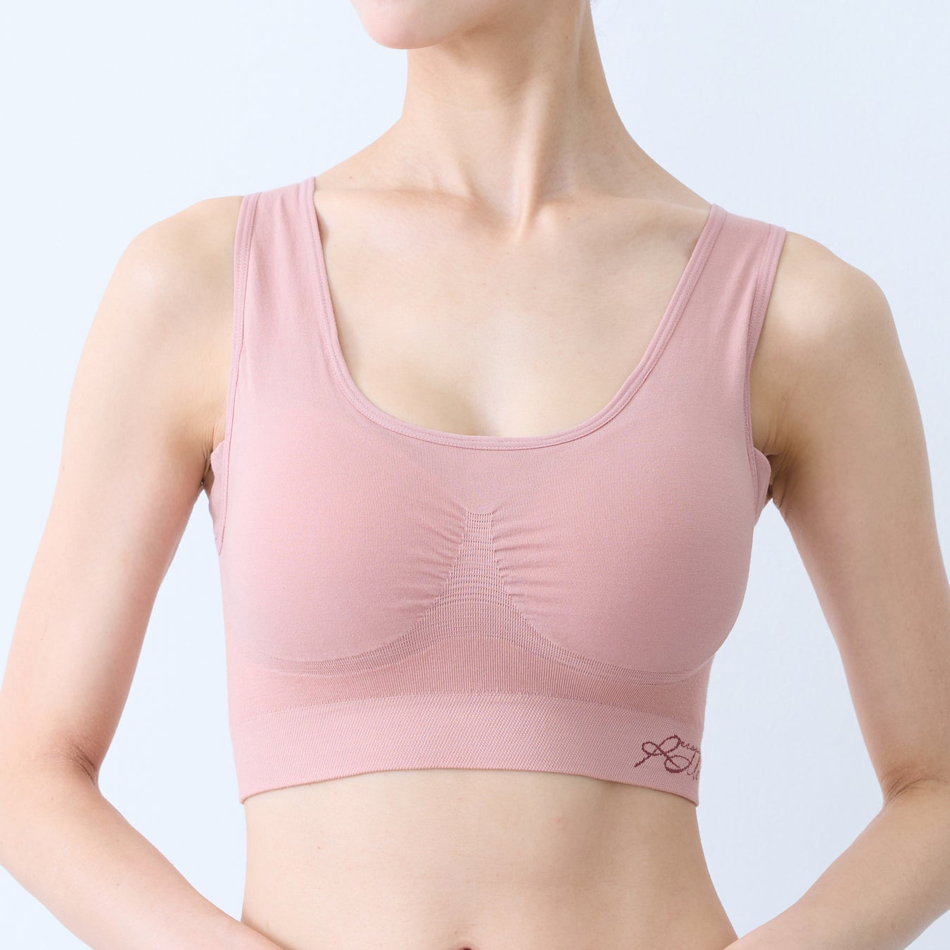 リラックスタイムだけでなく、24時間※快適に着用できるノンワイヤー・カップ付きインナーです。特に着心地を左右する身頃は、脇に縫い目がなく立体的に仕上がる「成形編み」技法で編み立てられています。デリケートな肌に縫い代が当たらないストレスフリーな設計と、やさしいフィット感で、様々な身体の動きに寄り添います。