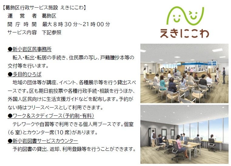 ○ この取り組みの一環として、JR新小岩駅から直結の立地に 「JR新小岩南口ビル」 が2023年10月1日(日)に開業します。
