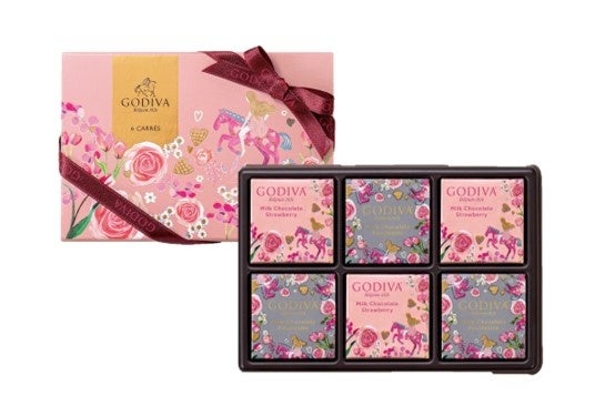 レディ・ゴディバ、フラワー、ハート形のワッフルなど、コレクションを象徴するモチーフを散りばめたパッケージに、「ルビーストロベリームース」などバラエティ豊かなG キューブを詰め合わせました。