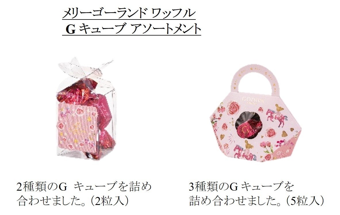おいしいチョコレートやお菓子を食べたときにめぐる幸せをメリーゴーランドのモチーフで表したパッケージは、金と銀の箔が華やかなバレンタインにぴったりのデザインです。ハート形の「メリーゴーランド ワッフル セレクション」、星形の「メリーゴーランド ワッフル キープセイク」、柔らかな色合いの「メリーゴーランド ワッフル アソートメント」、豪華な3段のパッケージ「メリーゴーランド ワッフル スイーツセット」など、バラエティ豊かなラインナップです。この他、プチギフトにもぴったりなG キューブのアソートメントもご用意しています。