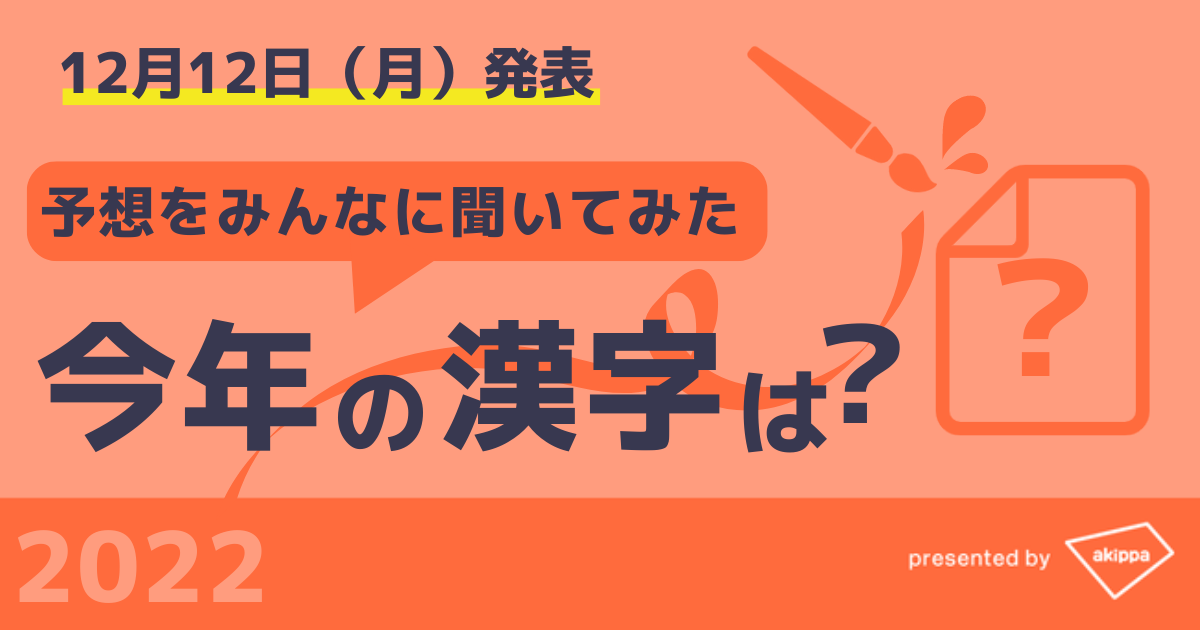 駐車場予約アプリ「akippa」を運営するakippa株式会社(代表取締役社長 CEO:金谷元気)は、12月12日(月)に京都・清水寺にて「今年の漢字」が発表されることに伴い、akippaを利用しているユーザーに「今年の漢字」を予想するアンケートを実施いたしましたので、その結果を発表いたします。