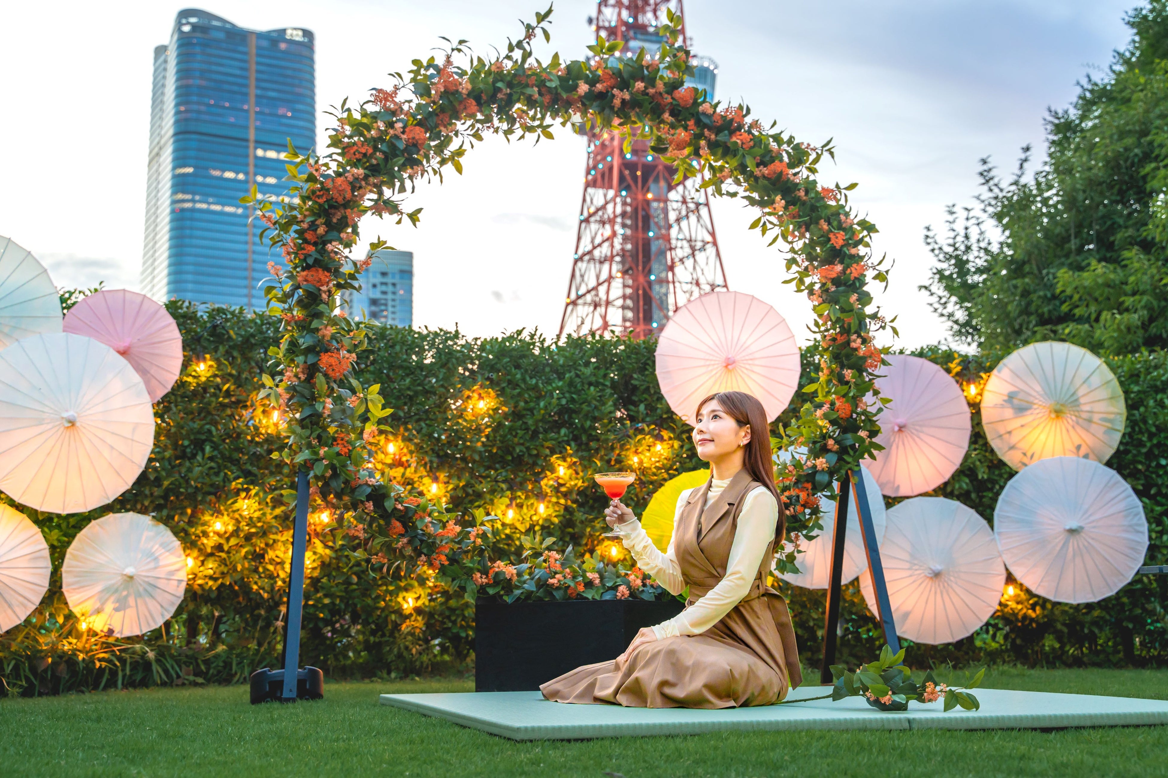 庭園には、フルーティーでどこか懐かしさを感じるような温かみのある金木犀の薫りを漂わせます。また、金木犀と緑で装飾したフラワーアーチを設置し、温かみのあるオレンジや黄色の和傘とともに東京タワーを目前にしたフォトスポットで、秋の夜長をリラックスしてお過ごしいただけます。