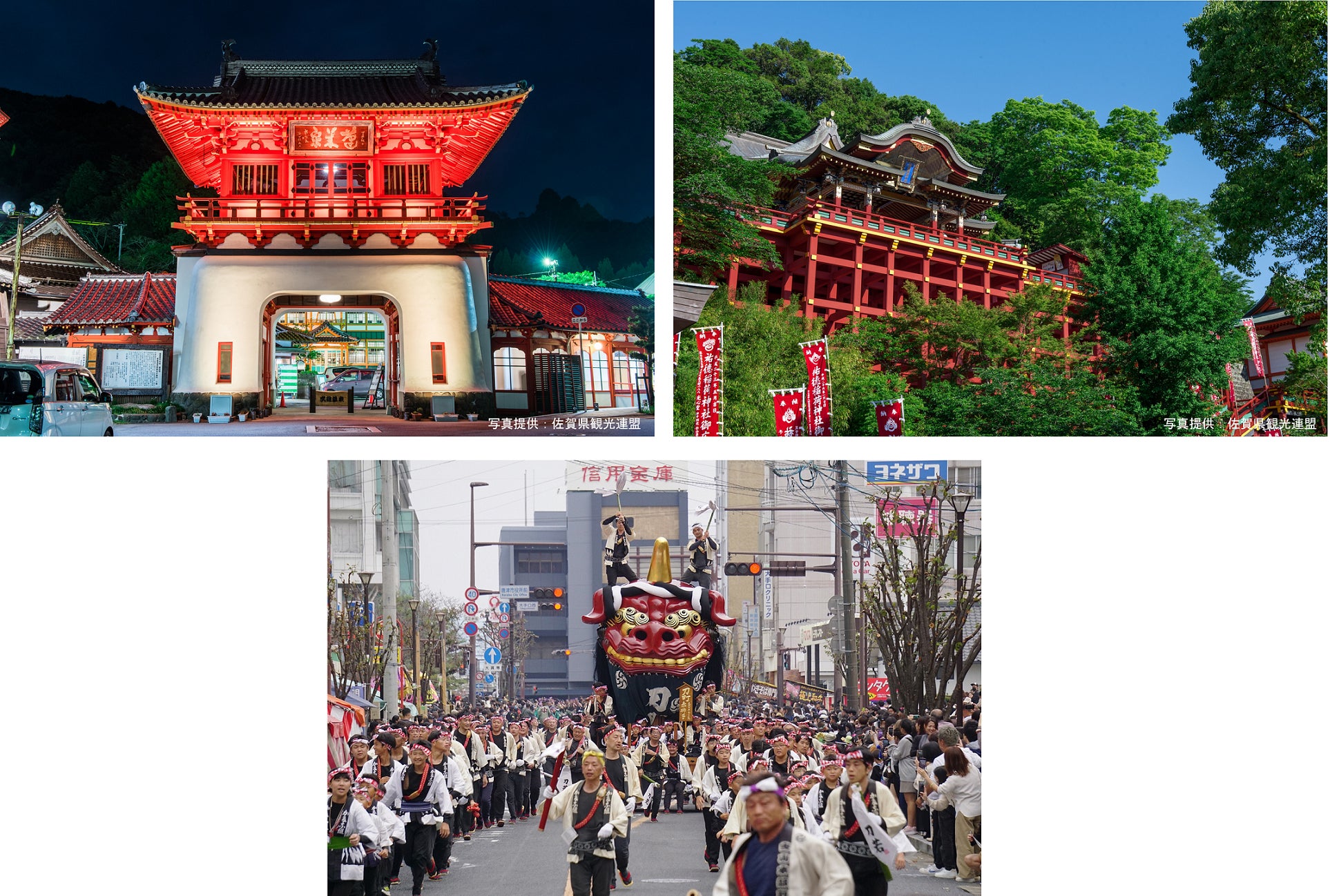 日本三大稲荷に数えられる祐徳稲荷神社は、赤い鳥居が特徴。四季の花々と赤い鳥居の見渡す限りの色の世界が楽しめる。